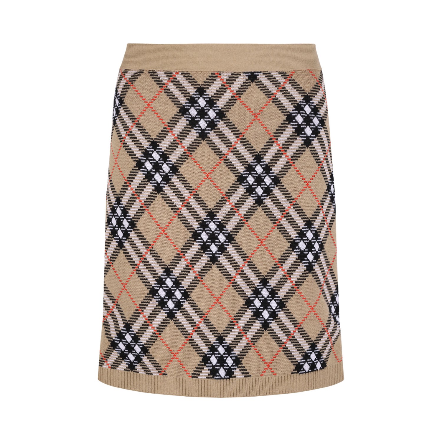 Burberry Embroidered Wool Blend Mini Skirt. Embroidered wool blend mini skirt featuring Burberry Check embroidery across the entire surface. Elastic waist, ribbed bottom and unlined.