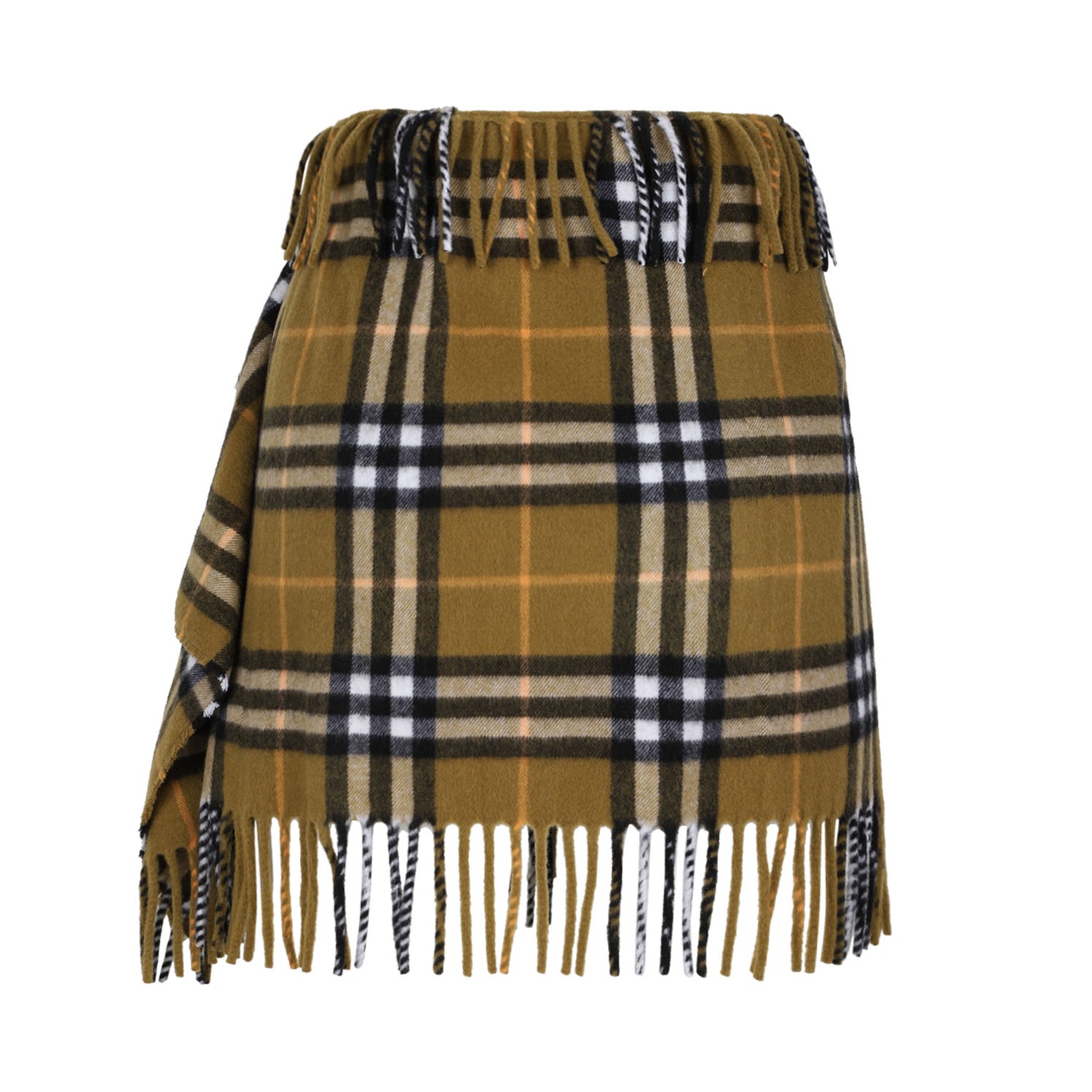 Burberry Decorative Buckle Skirt. Multicolour wool blend skirt, check pattern, decorative buckle detail, fringed edge.