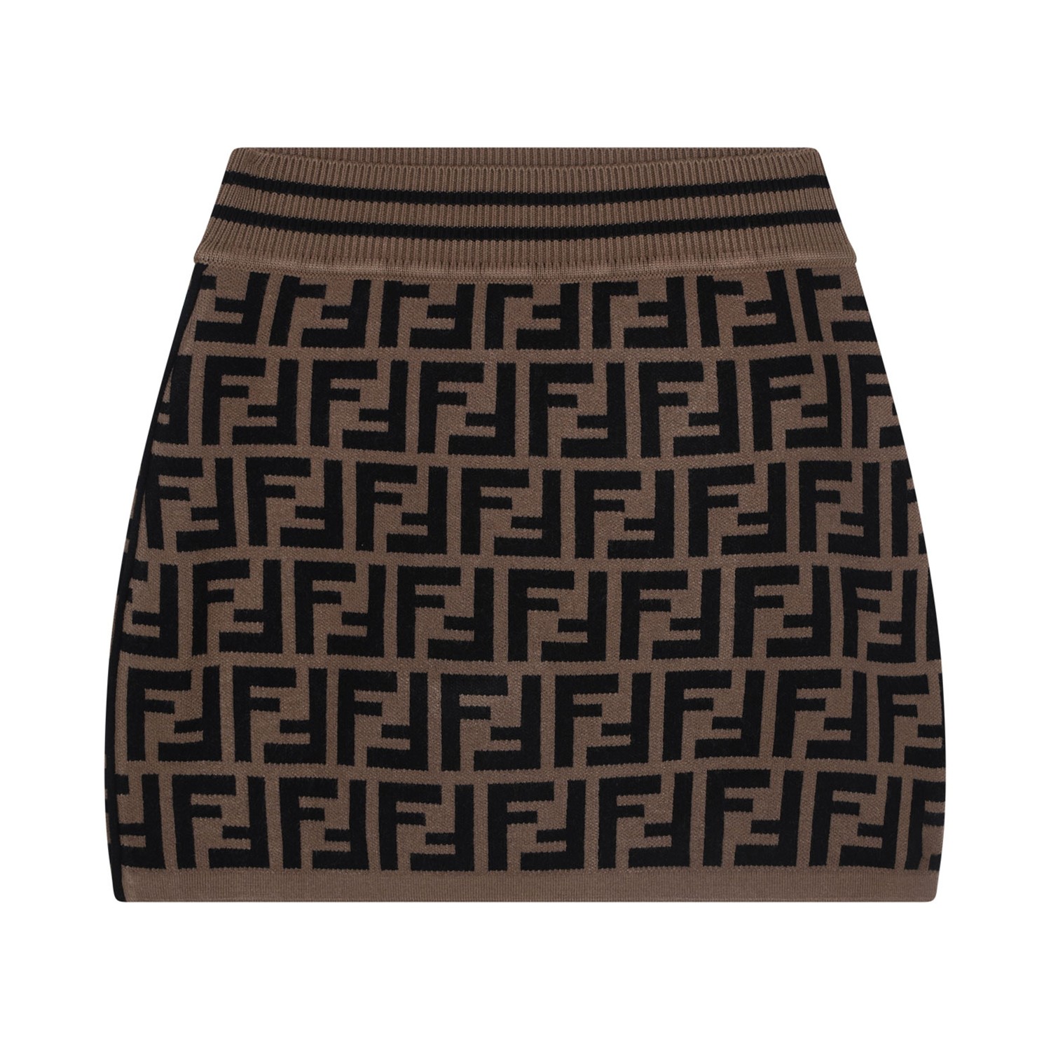 Fendi Kids Brown Logo Motif Skirt. Brown cotton skirt, FF pattern with ribbed edges.