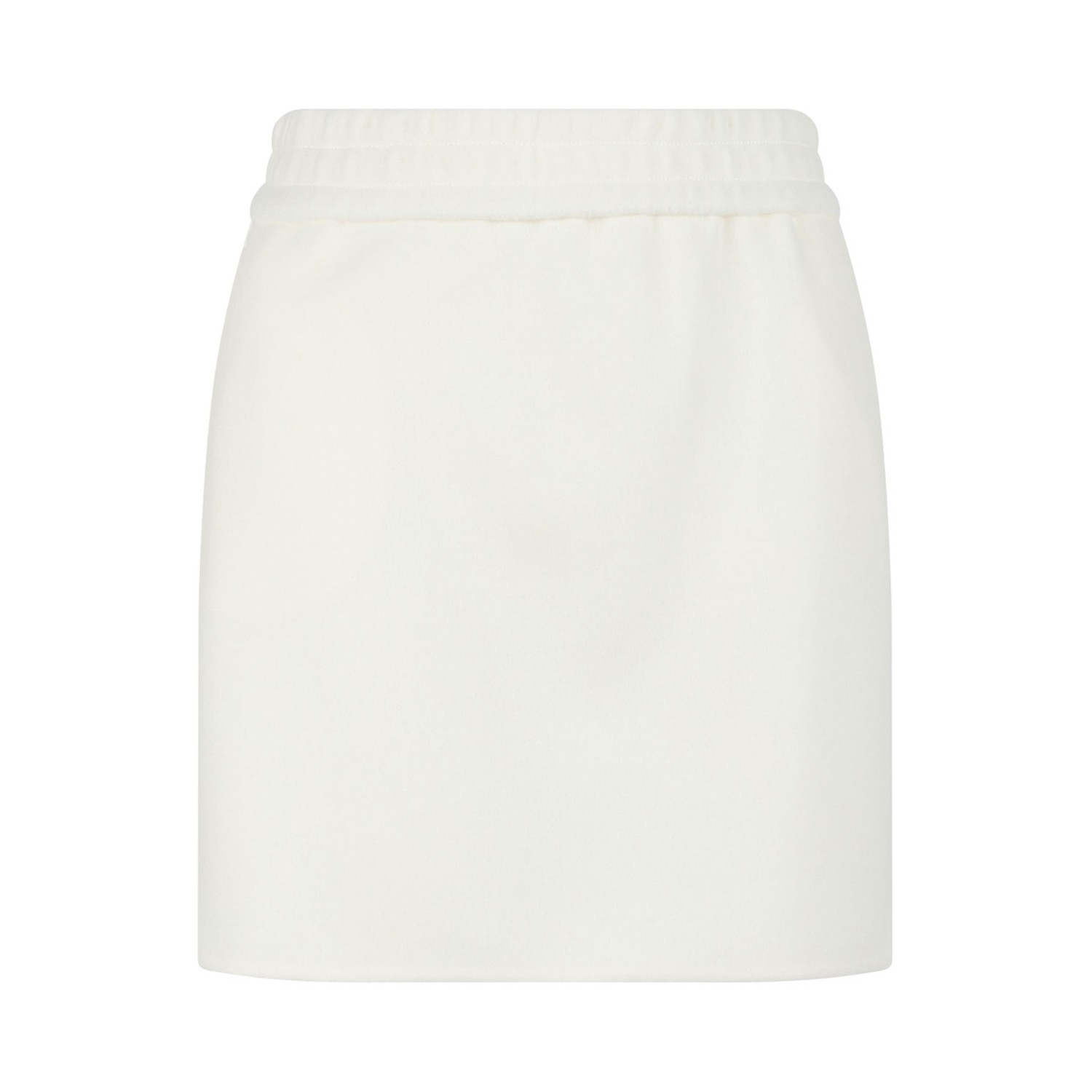 Max Mara White Mini Skirt. White soft double wool and cashmere jersey mini skirt featuring a straight silhouette, side inset pockets and an elasticated waistband. Unlined design featuring Max Mara lettering on the back, on the right side when worn.