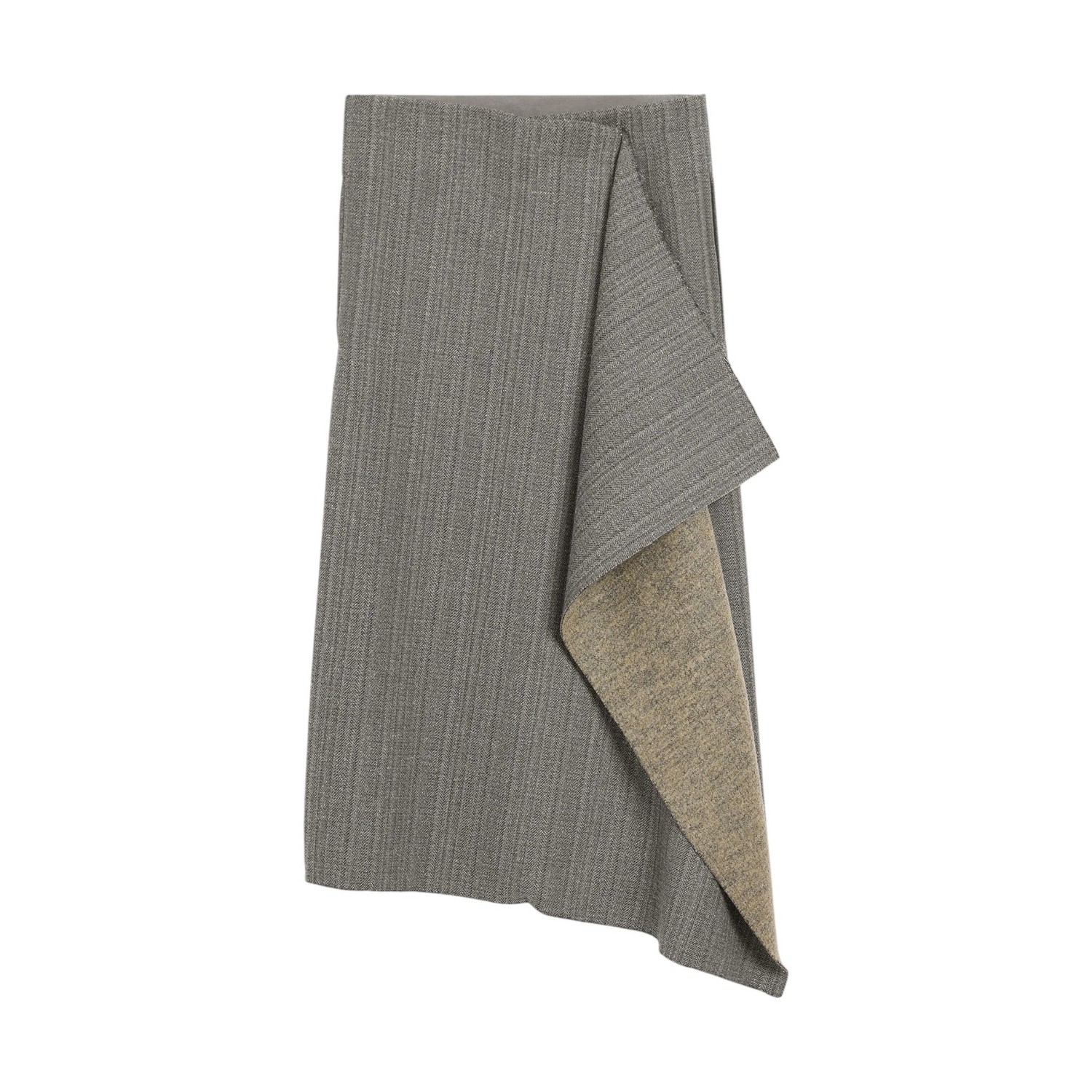 Grey Wool Midi Herringbone Wrapped Skirt