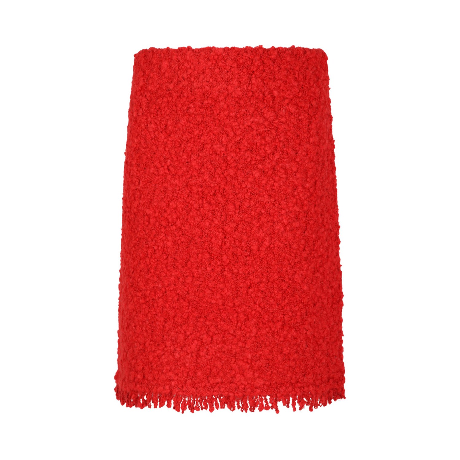 Red Textured Wool Skirt With Fringe Hem