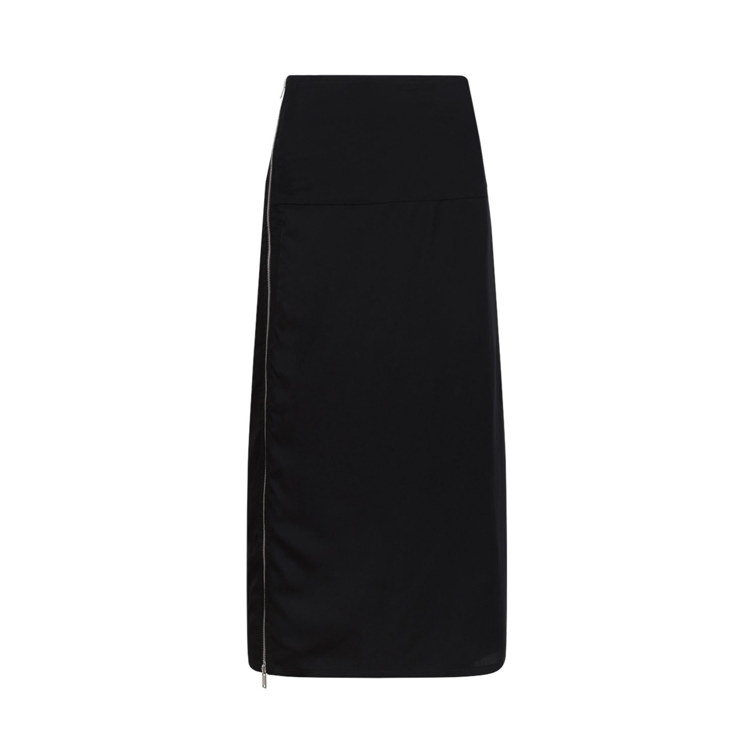 Jil Sander Black Off-Centre Zip-Fastening Midi Skirt. Black off-centre zip-fastening midi skirt with pleat detailing, asymmetric hem and mid-length.