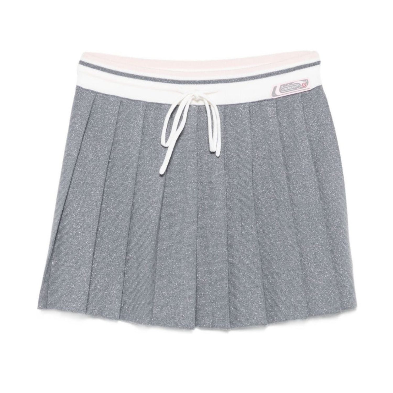 Casablanca Silver Merino Knit Tennis Skirt. Silver merino wool tennis kirt with Merino contrasting ribbed drawstring waist.