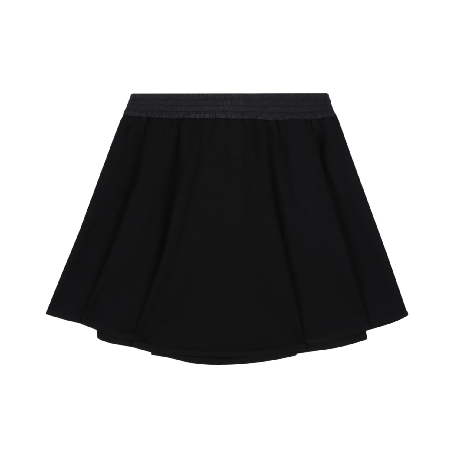 Moncler Kids Black Logo Embroidered Skirt. Black lightweight cotton skirt by Moncler, features an elasticated waistband for upmost comfort and adorned with the signature Moncler felt patch to the bottom.
