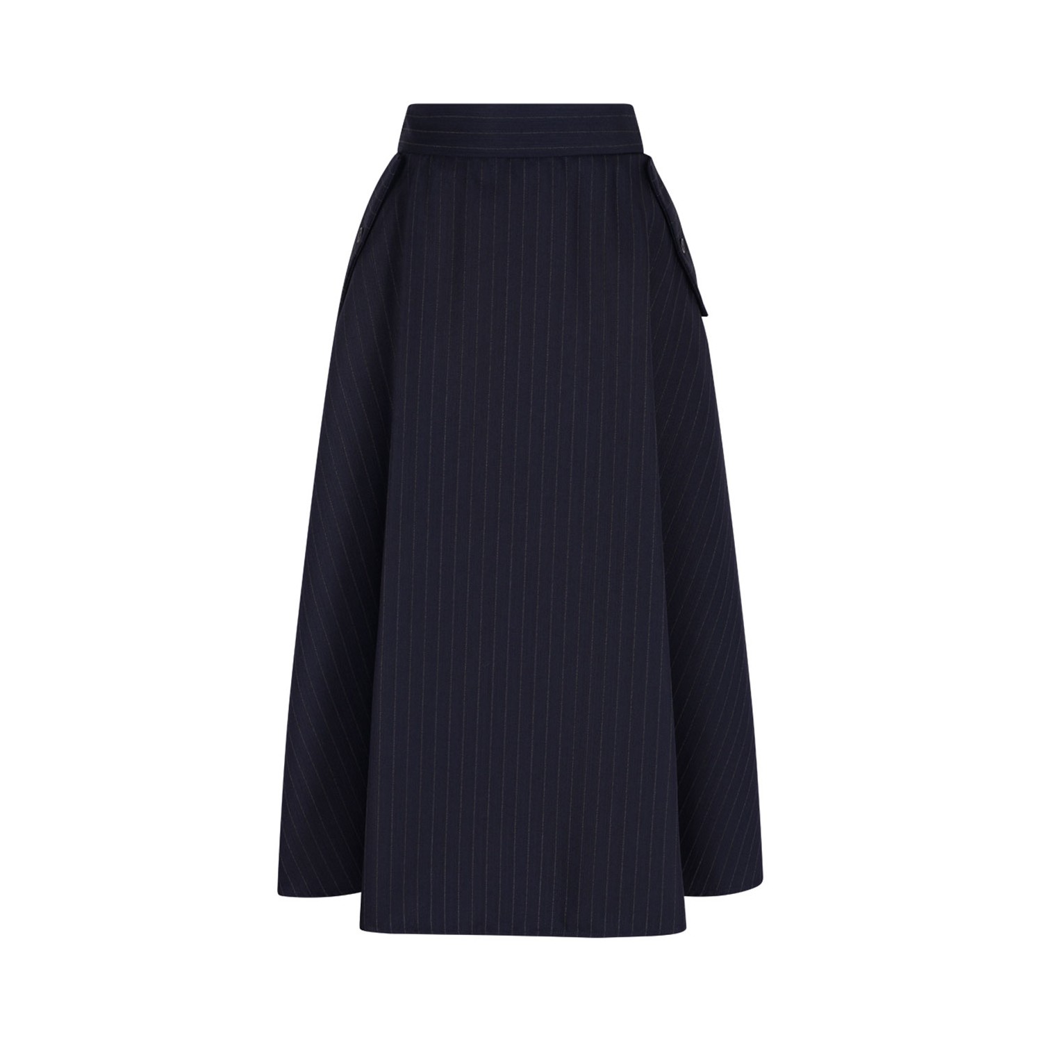 Dark Navy Blye Pinstripe Button-Detailing Midi A-Line Skirt