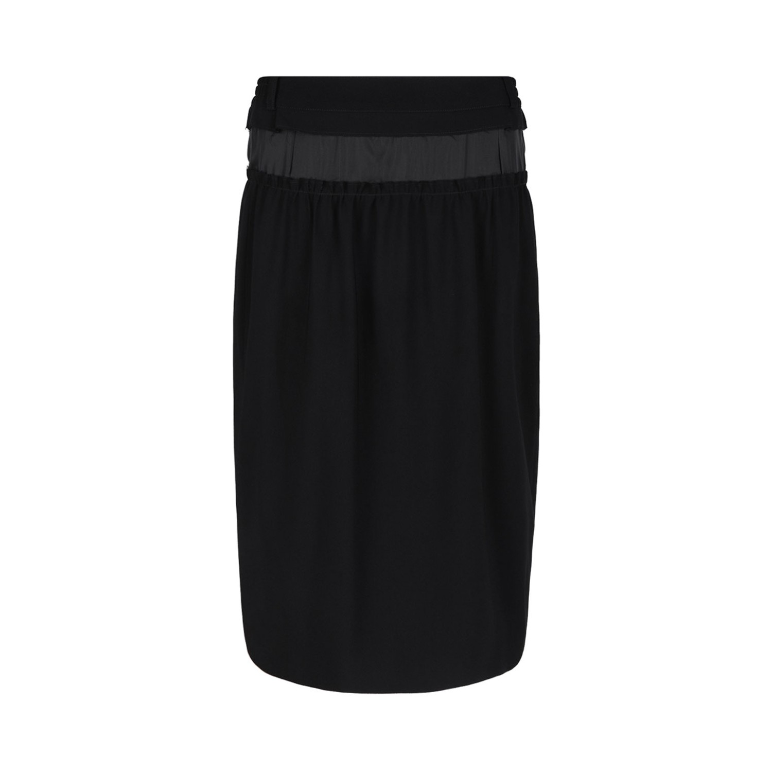 Maison Margiela Black Pencil Midi Skirt. Black pencil midi skirt with rear button and zip fastening. Rear slit, belt loops and panelled design.