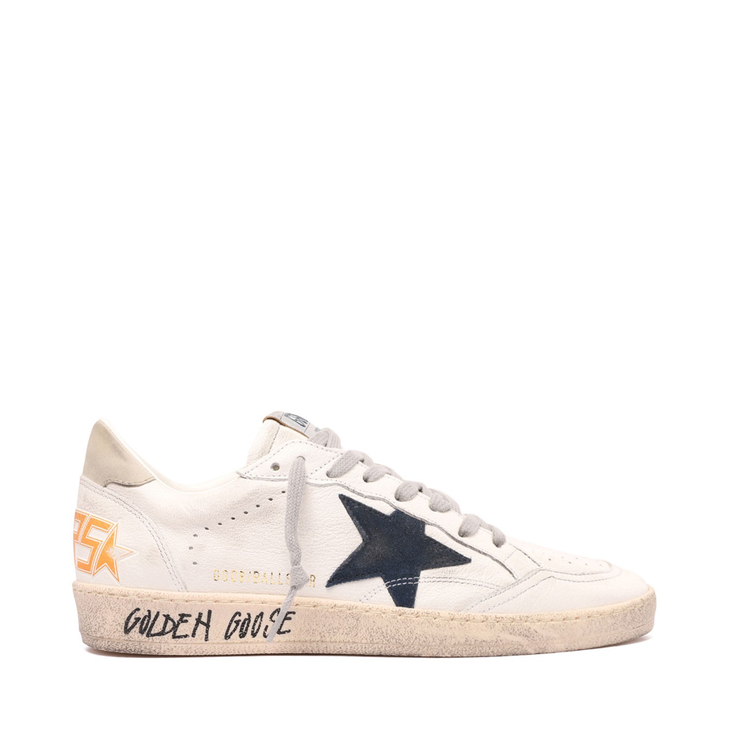 Golden Goose Ballstar Sneakers. White goat leather ballstar sneakers with front lace-up fastening, flat rubber sole, contrasting heel counter and star patch detail.
