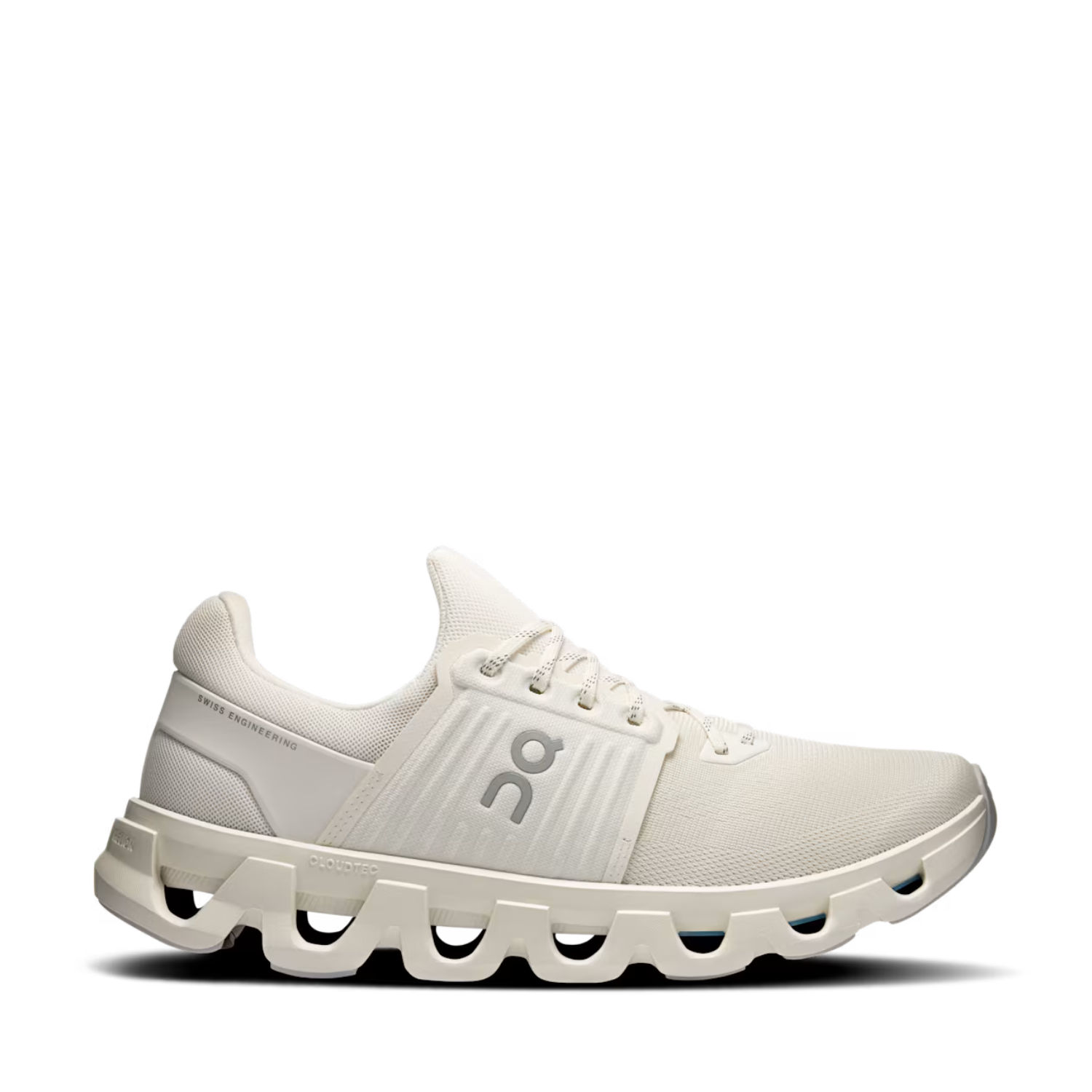 On Shoes Ivory Cloudswift 4 AD Sneakers. Ivory low top sneakers with water-repellent finish on the upper, Helion superfoam midsole with different densities for a soft landing, breathable mesh upper. Rubber sole for excellent grip, renewed cage structure for improved midfoot stability, Speedboard in mixed nylon for a responsive ride. Technical mesh for a modern aesthetic and superior comfort, soft enveloping structure for a comfortable fit.