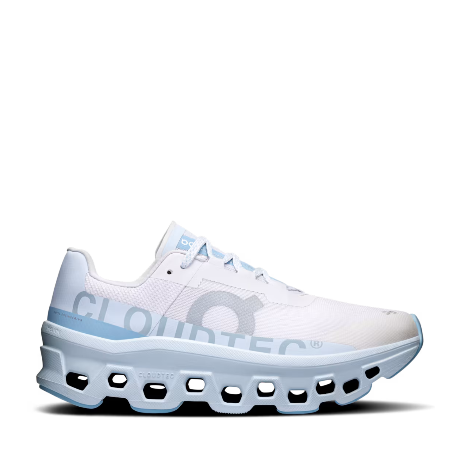 On Shoes Frost Wash Cloudmonster Sneakers. Frost wash low top sneakers with super cushioned shoes for more bounce and energy, soft insole and upper for ultimate comfort, Snappy Speedboard for maximum energy return. Exclusive arch shape for a powerful and natural swing, Helion superfoam absorbs impacts upon impact. Lightweight, resistant over time and to temperature changes.