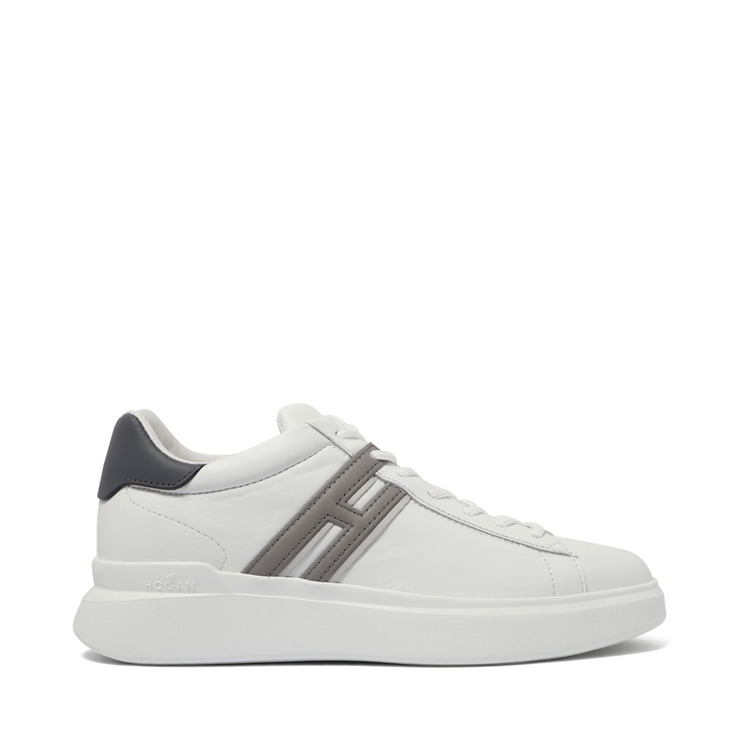 Hogan White H580 Sneakers. White leather sneakers with front lace-up fastening, memory foam insole, flat rubber sole and applique logo.