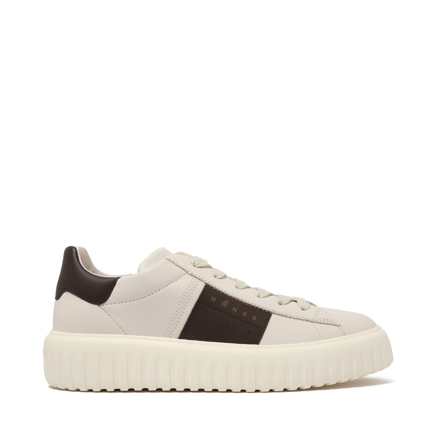 Hogan White and Black H-Stripes Sneakers. White and black calf leather sneakers with front lace-up fastening, logo-embellished side panels, round toe and branded insole.