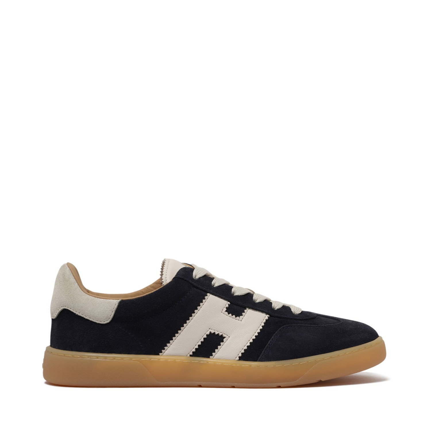 Hogan Dark Blue Cool Suede Sneakers. Dark blue suede sneakers with front lace-up closure, round toe, rubber sole and H logo patch.
