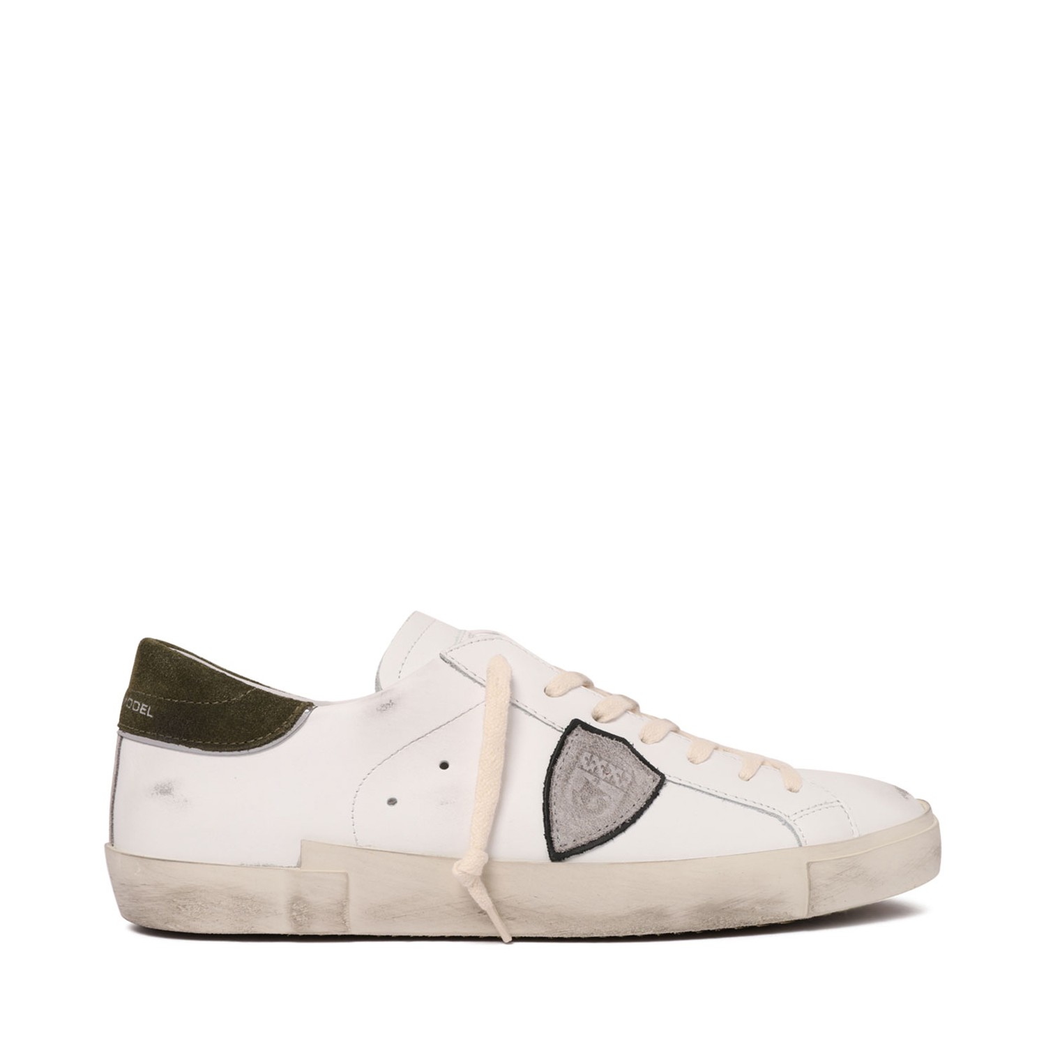 Philippe Model White and Dark Green Sneakers. White and dark green leather sneakers, branded insole, logo patch at the tongue, round toe, lace fastening, white rubber sole.