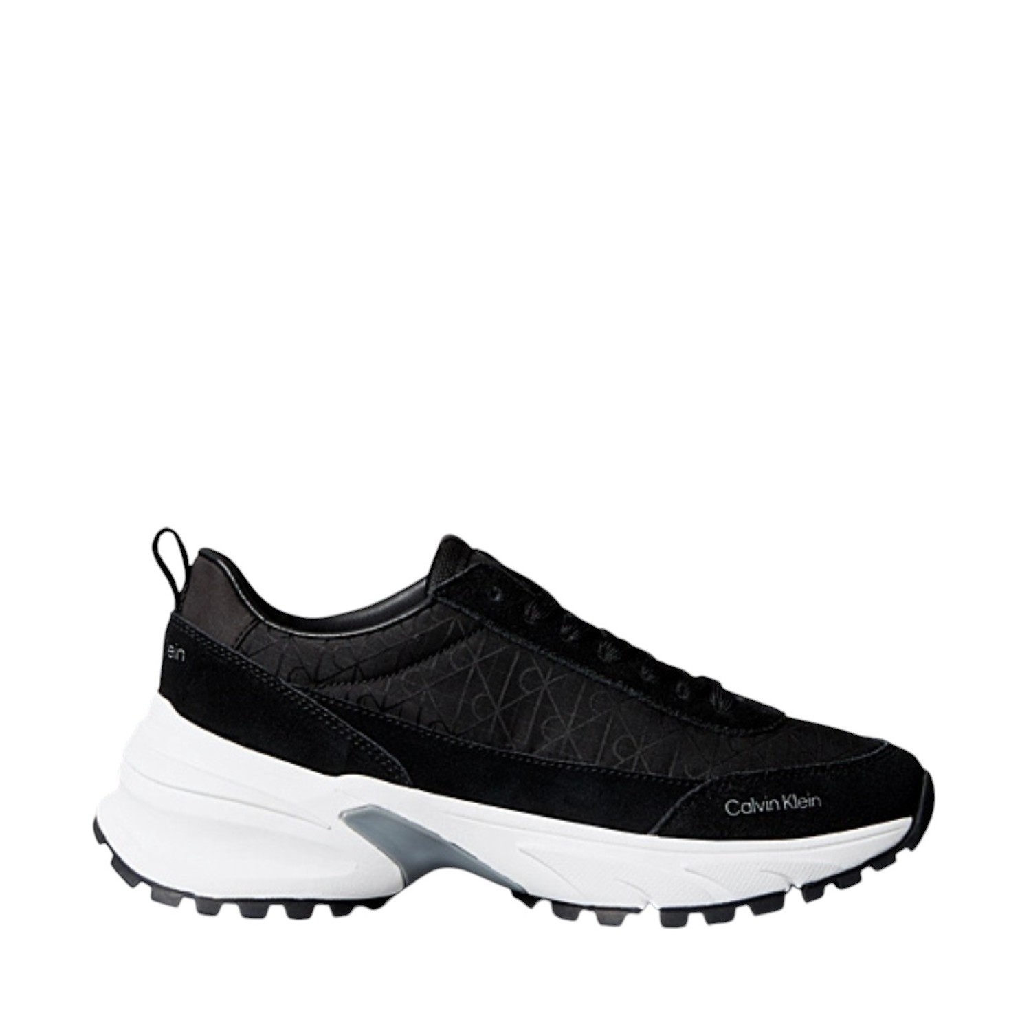 Calvin Klein Black Suede and Nylon Sneakers. Black suede and nylon sneakers with emblem logo, soft suede accents and a shiny TPU insert on the outsole. Crafted with a Strobel sock construction for a flexible, snug fit, they feature a lightweight, lug rubber outsole that cushions and absorbs shock for long-lasting comfort.