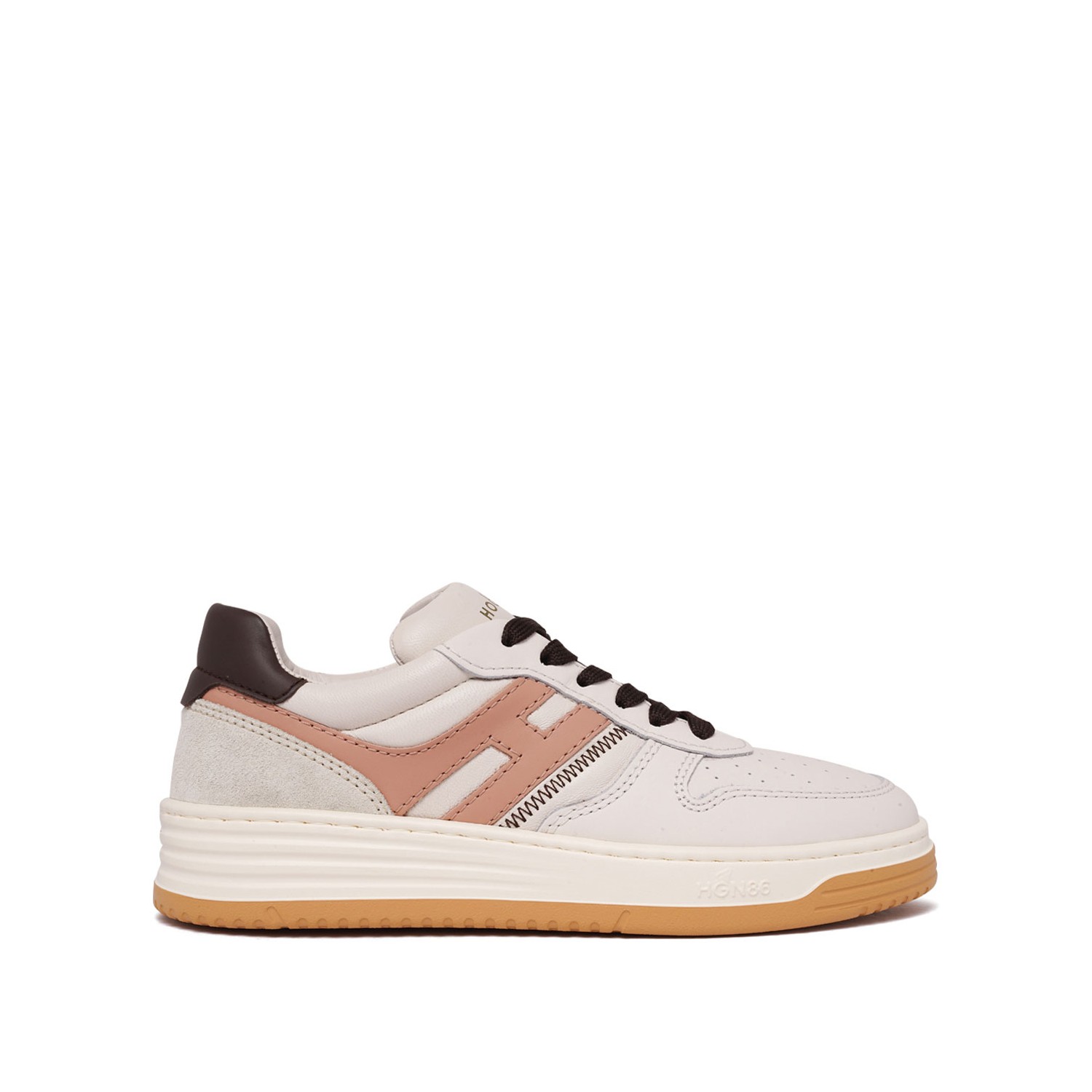 Hogan Light Grey and Beige H630 Sneakers. Light grey and beige leather sneakers with front lace-up fastening, logo-embellished side panels, branded insole and round toe.