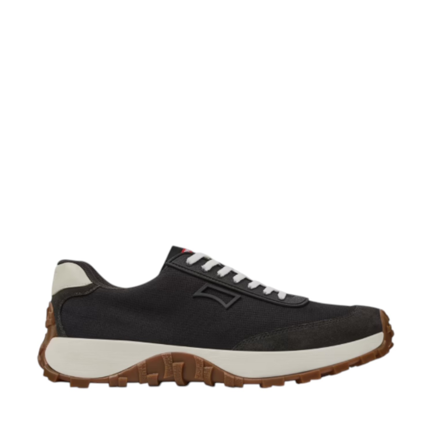 Camper Black Drift Trail Sneakers. Black men's sneaker in fabric and nubuck with OrthoLite® Recycled™ insoles, an EVA midsole, and Vibram rubber outsoles.