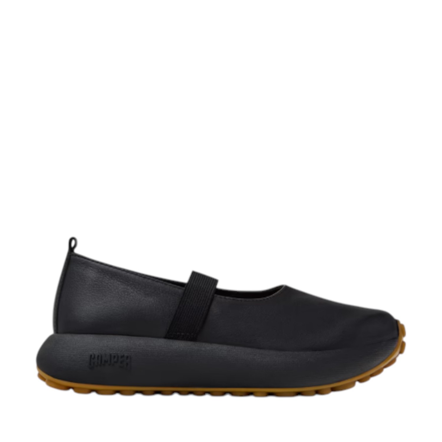 Camper Black Pelotas Athens Laether Sneakers. Women's black calfskin sneaker with OrthoLite® Recycled™ insoles, EVA midsoles, and rubber outsoles.