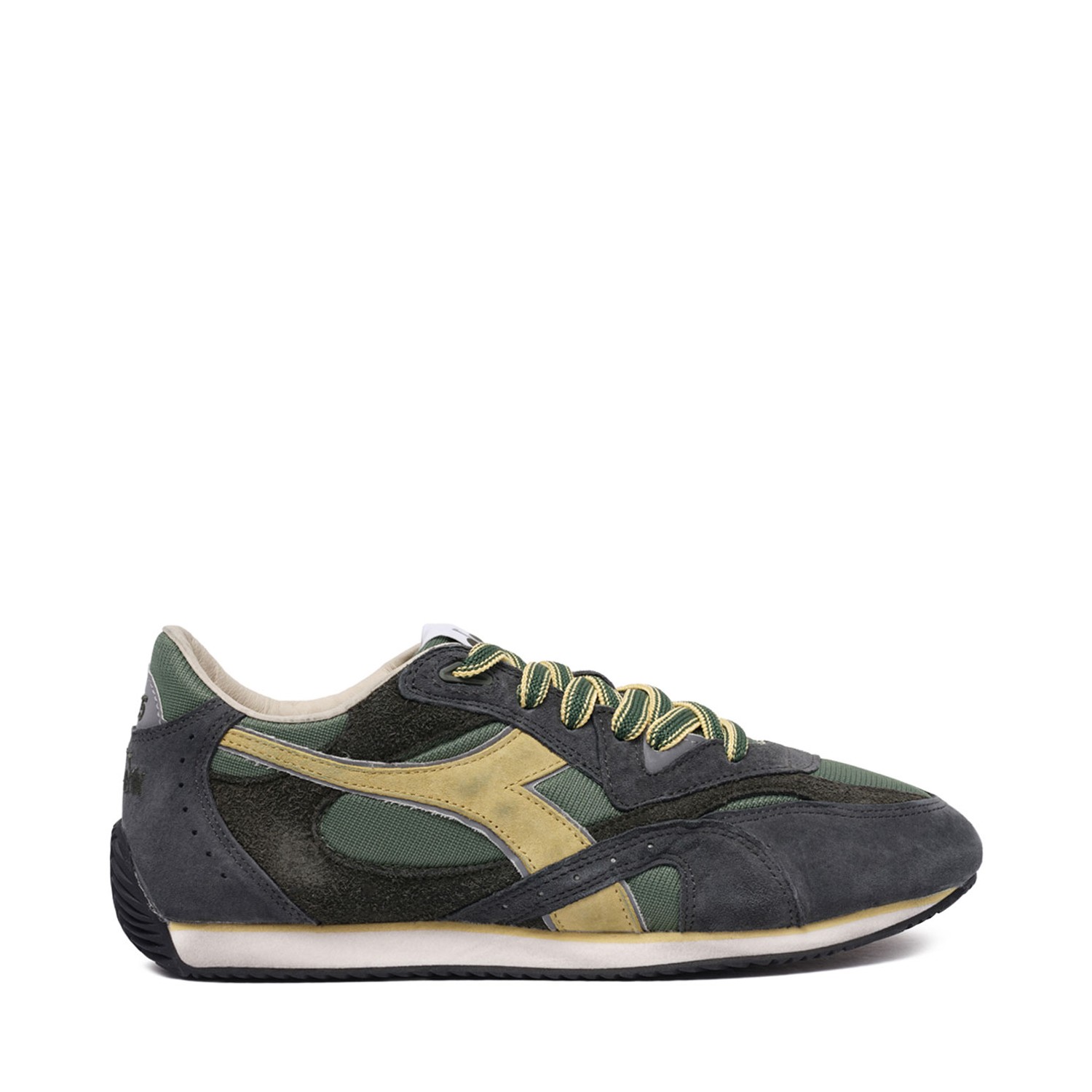 Diadora Green Suede Panelled Trainers. Green suede panelling sneakers with lace-up fastening, tonal laces, rubber sole.