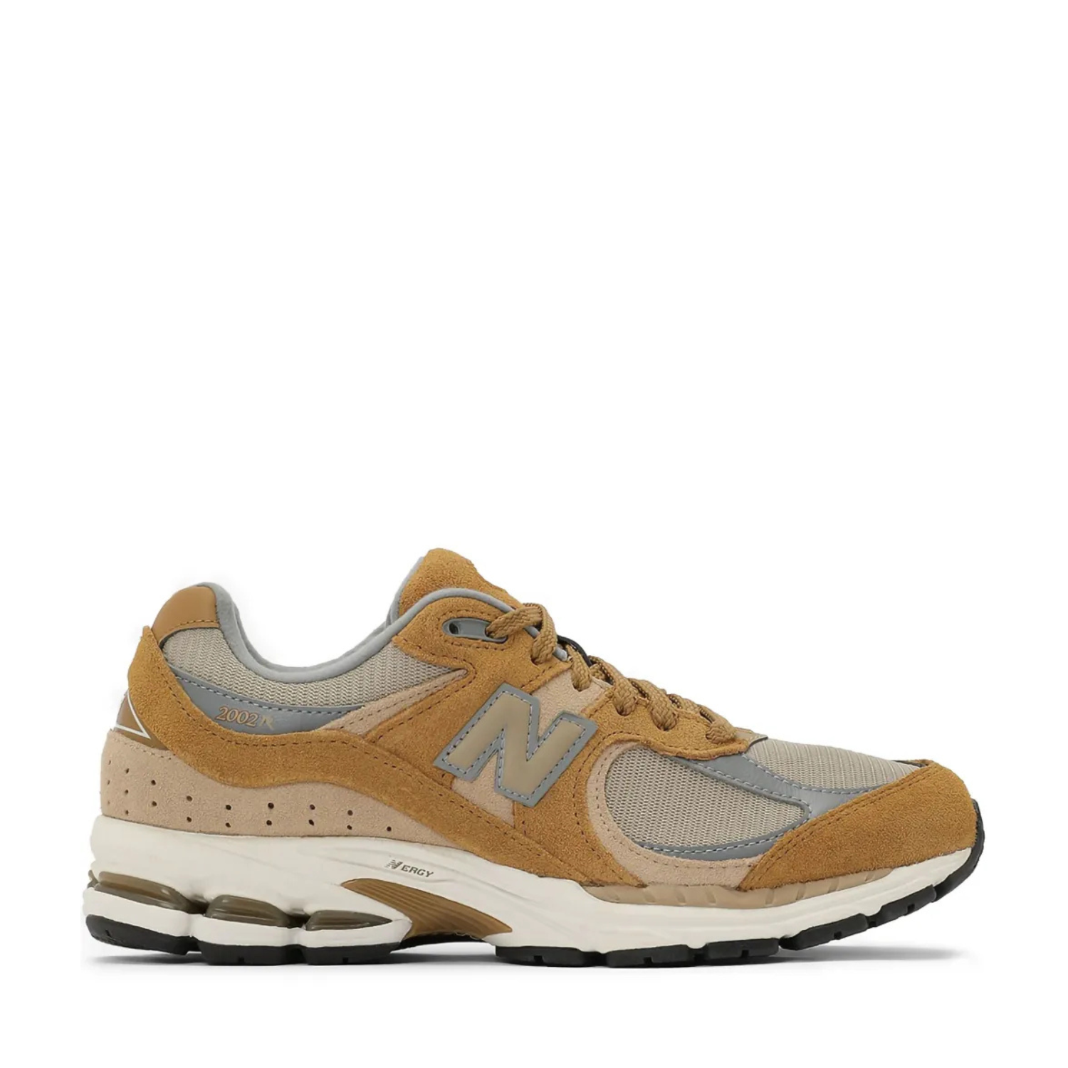 New Balance Brown and Grey 2002R Sneakers. Brown and grey suede and mesh inserts sneakers with front closure with laces, side application with logo, application on the tongue with logo. Round tip, feature ABZORB midsole, characteristic SBS shock absorber system, characteristic N-ergy sole.