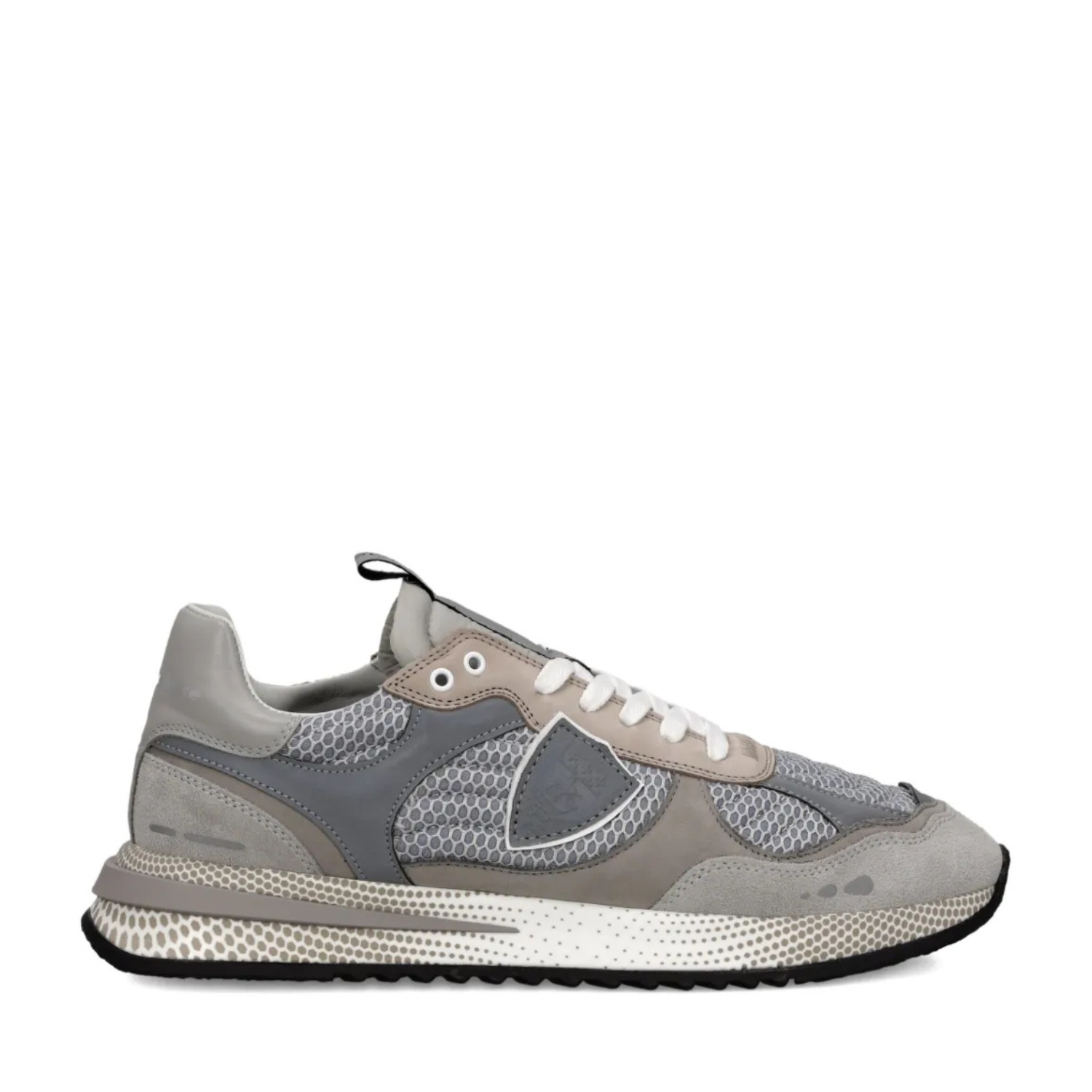 Philippe Model Grey Olympique Sneakers With Mesh Inserts. Grey sneakers with contrasting mesh inserts, perforated detail, padded tongue, rubber sole and heel tab.
