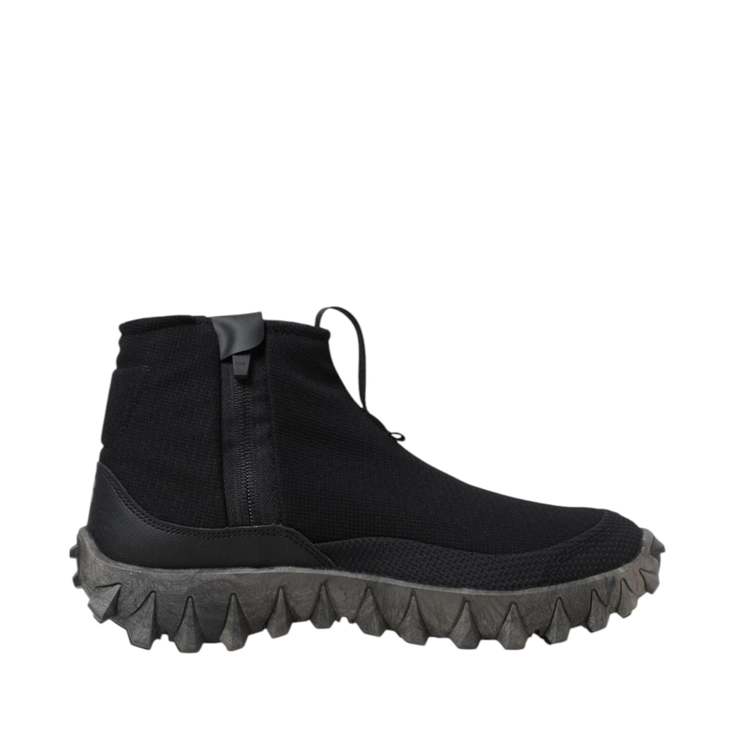 Salomon Black Snowclog Mid Sneakers. Black Snowclog Mid sneakers has a weatherproof shaft and a snow-safe tread on an outsole made from recycled materials. Thanks to its practical side zip, it is easy to put on and take off.