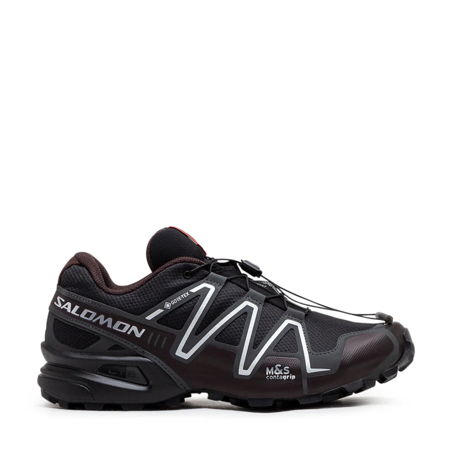 Salomon Black Speedcross 3 GTX Sneakers. Black sneakers is a technical running shoe designed for demanding outdoor conditions. It combines the proven Speedcross technology with a GORE-TEX membrane, providing waterproof protection while remaining breathable, keeping your feet dry and comfortable in wet and challenging environments.