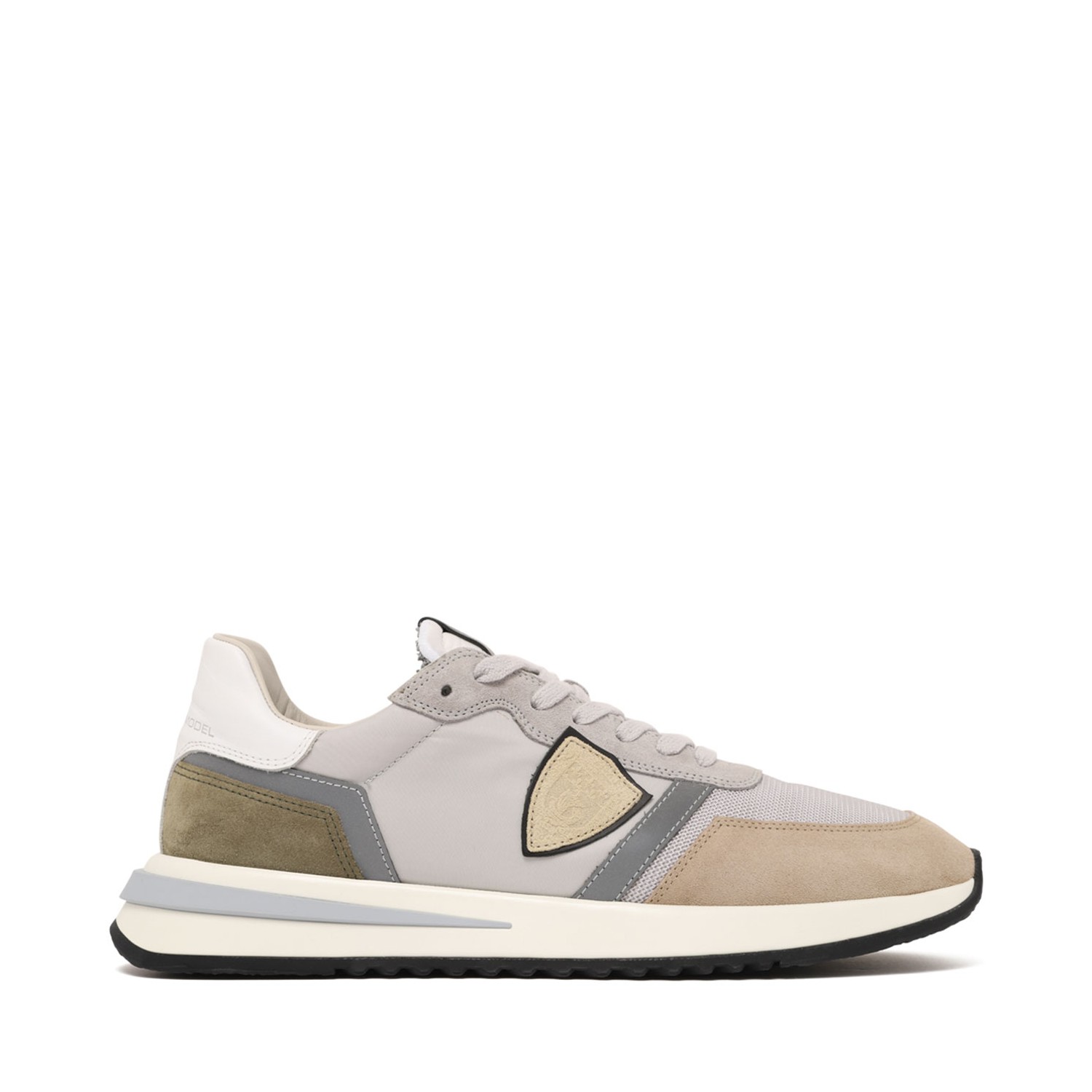 Philippe Model Tropez 2.1 Low Top Sneakers. Mondial gris low top sneakers featuring a panelled design, side logo patch, tongue logo patch, round toe, lace-up front fastening, branded insole and flat rubber sole.