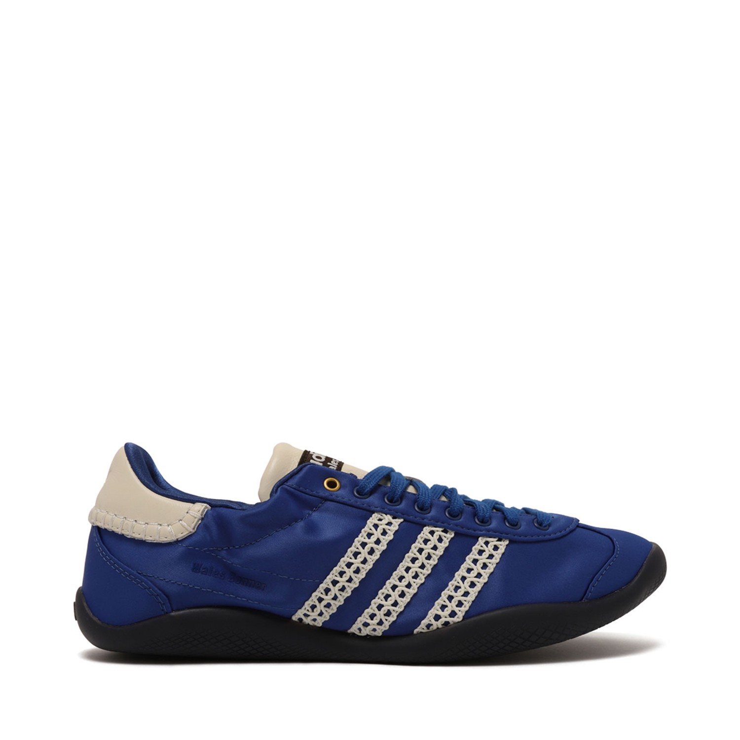 Adidas X Wales Bonner Blue Lace Stripes Sneakers. Blue lace stripes sneakers with front lace-up closure, round tip, rubber sole, seams.