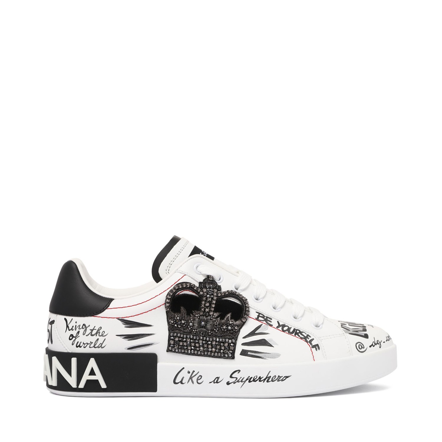 Dolce & Gabbana White Logo Patch Sneakers. White calf leather sneakers, logo patch, front lace-up fastening, contrasting branded heel counter, flat rubber sole, branded insole.