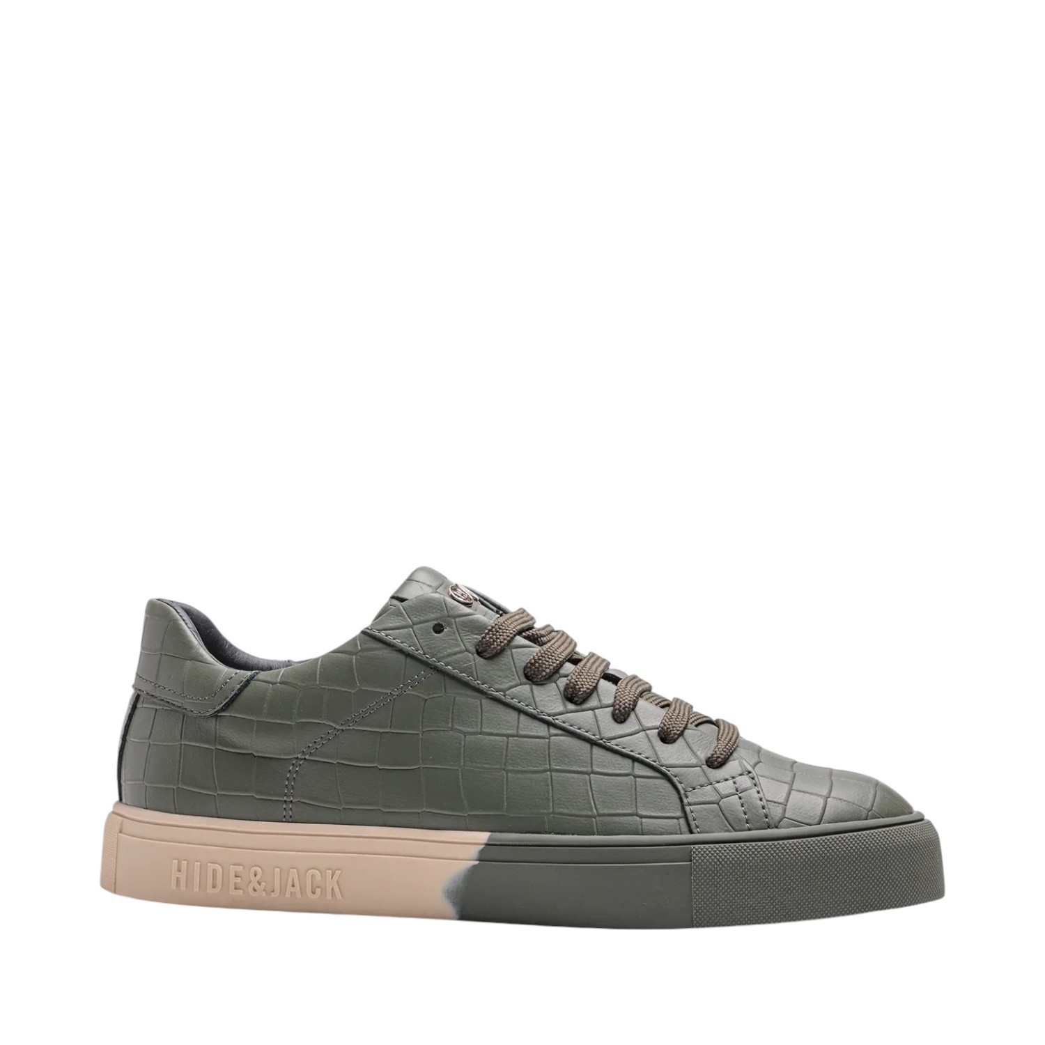 Hide&Jack Essence Half Sole Beige Green Sneakers. Low top sneaker made of leather printed croco upper, lining made of leather and synthetic material. Coated laces with color details. Outsole in rubber in double color.