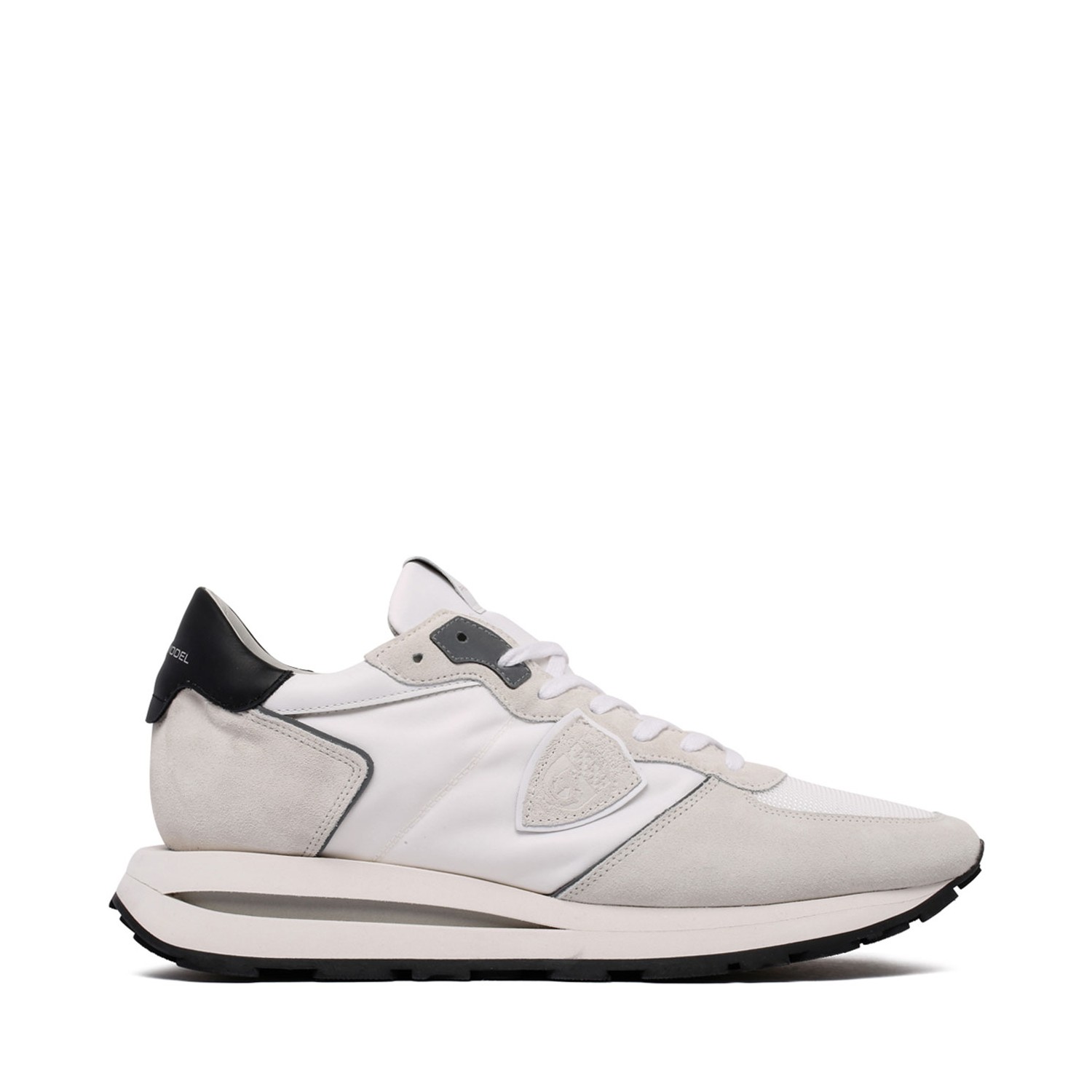 Philippe Model White Tropez Haute Sneakers. White textile and calf leather sneaker. Sneaker with upper in technical fabric and suede, with contrasting top. Insole in memory foam and technical fabric, breathable lining in cotton sponge. Sole in microporous rubber with artisanal milling and three-dimensional insert in contrast under the heel.