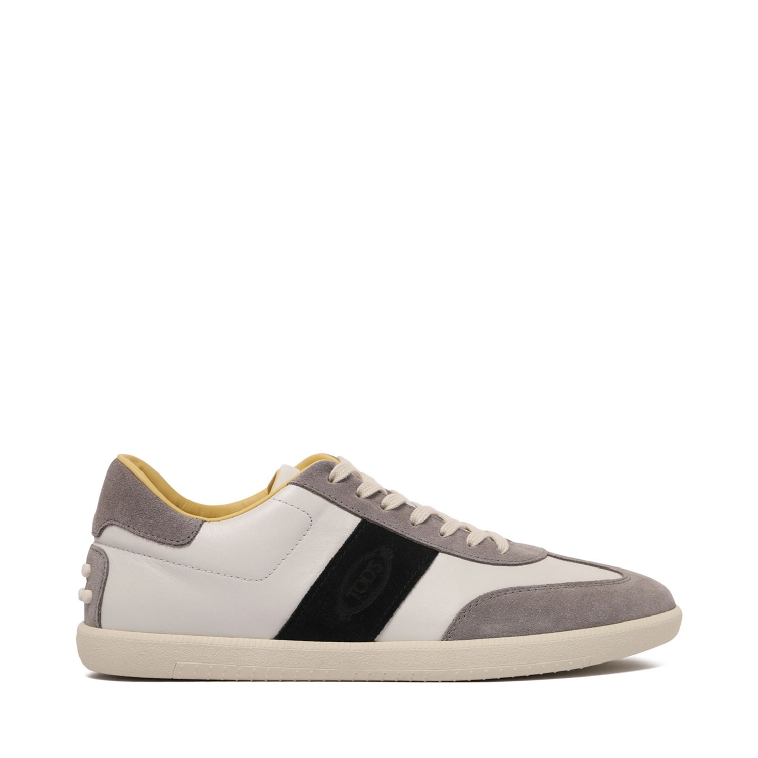 Tod's Tabs Colour Block Sneakers. White and multicolour calf leather sneakers, colour block panelled design, debossed logo to the side. Logo patch at the tongue, round toe, front lace-up fastening. Signature Gommino sole, flat rubber sole.