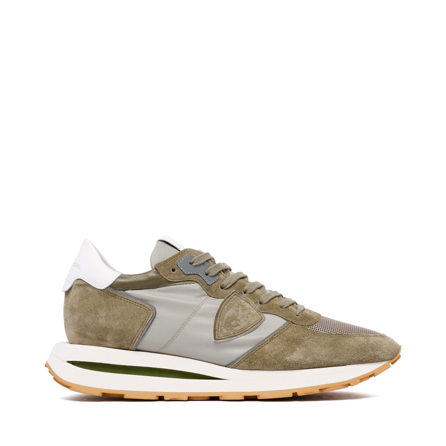 Philippe Model Green Tropez Haute Sneaker. Green nylon and calf leather sneaker. Sneaker with upper in technical fabric and suede. Insole in memory foam and technical fabric, breathable lining in cotton sponge. Sole in microporous rubber with artisanal milling and three-dimensional contrasting insert under the heel.