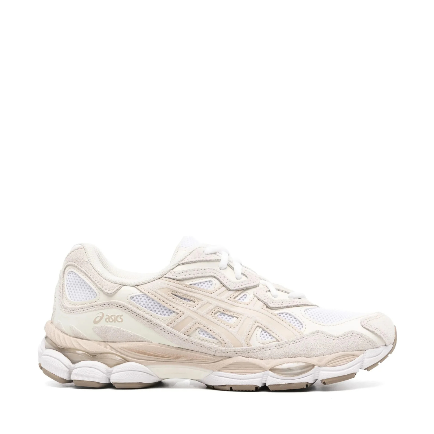 Asics White Feather Grey Gel NYC Sneakers. White feather grey gel NYC sneakers with modern performance running technology. Its design is inspired by the GEL-NIMBUS 3 from the early 2000s, incorporating distinctive elements from the MC-PLUS V model for a unique touch. Contrasting this vintage aesthetic, the outsole uses GEL-CUMULUS 16 technology, combining lightweight foams and GEL units to deliver advanced cushioning and superior comfort with every step.