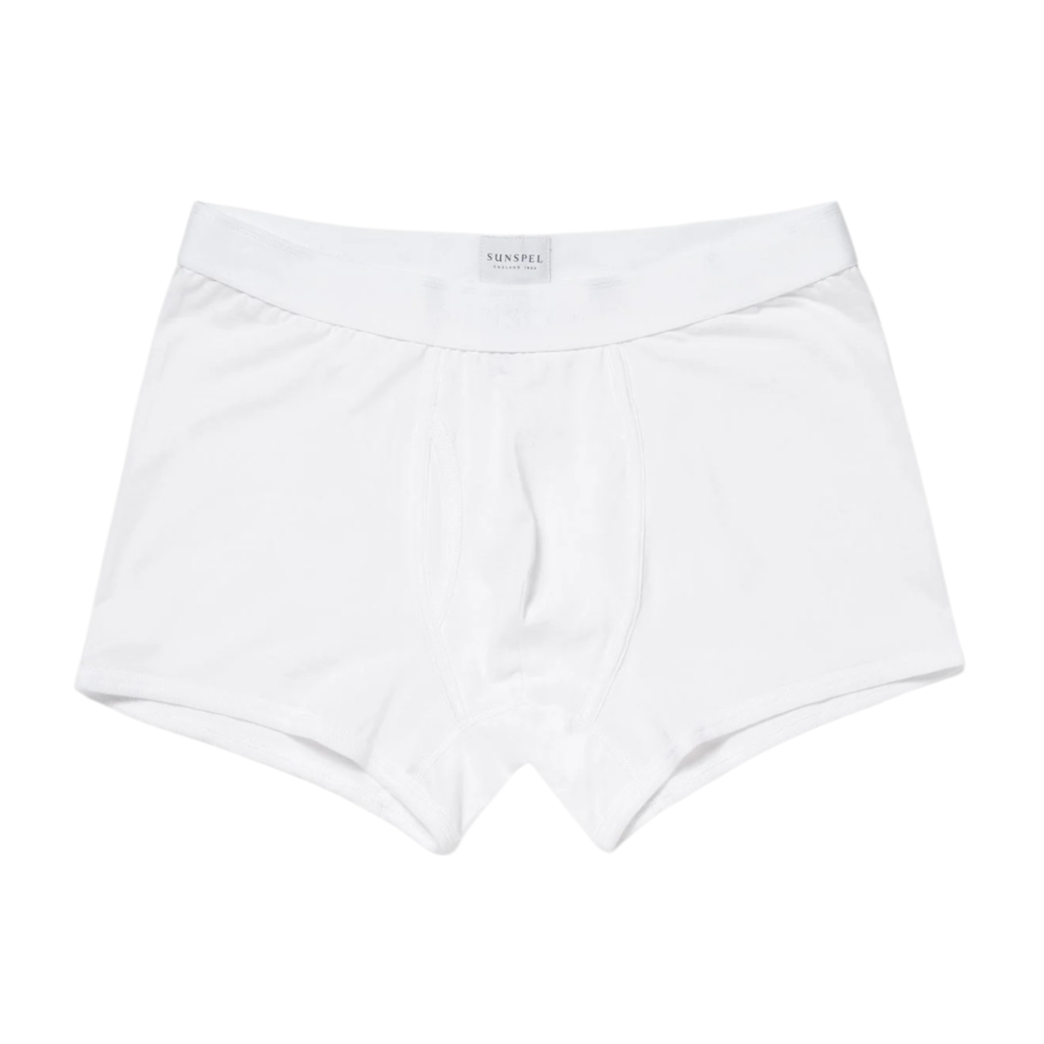Sunspel White Superfine Cotton Trunks. The front opening trunk combines the fit of a boxer short with the support of a brief. Made from luxuriously soft, lightweight long-staple cotton jersey. Elasticated hems ensure a comfortable fit throughout the day.
