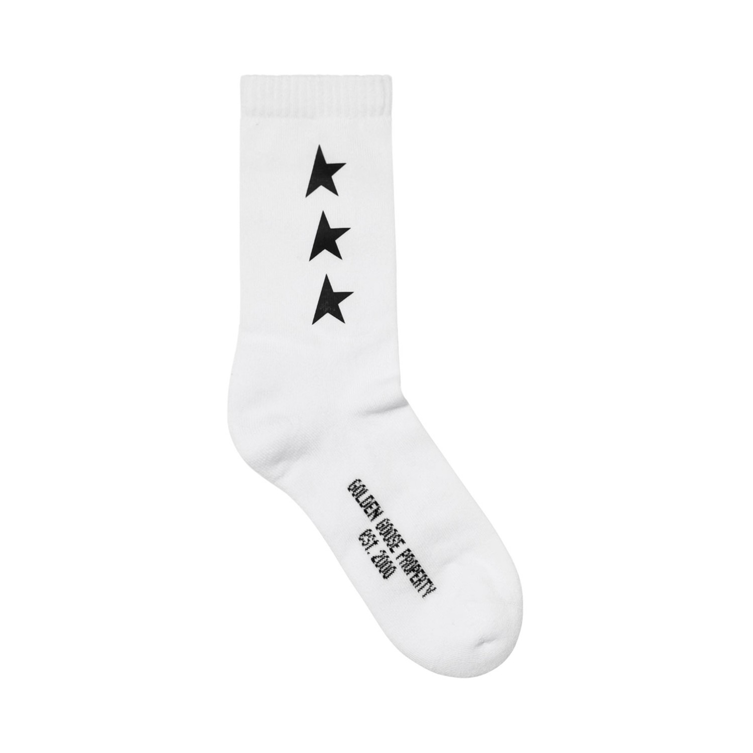 Golden Goose White Socks. White cotton socks, contrasting black stars on the back, low cost, unisex model.