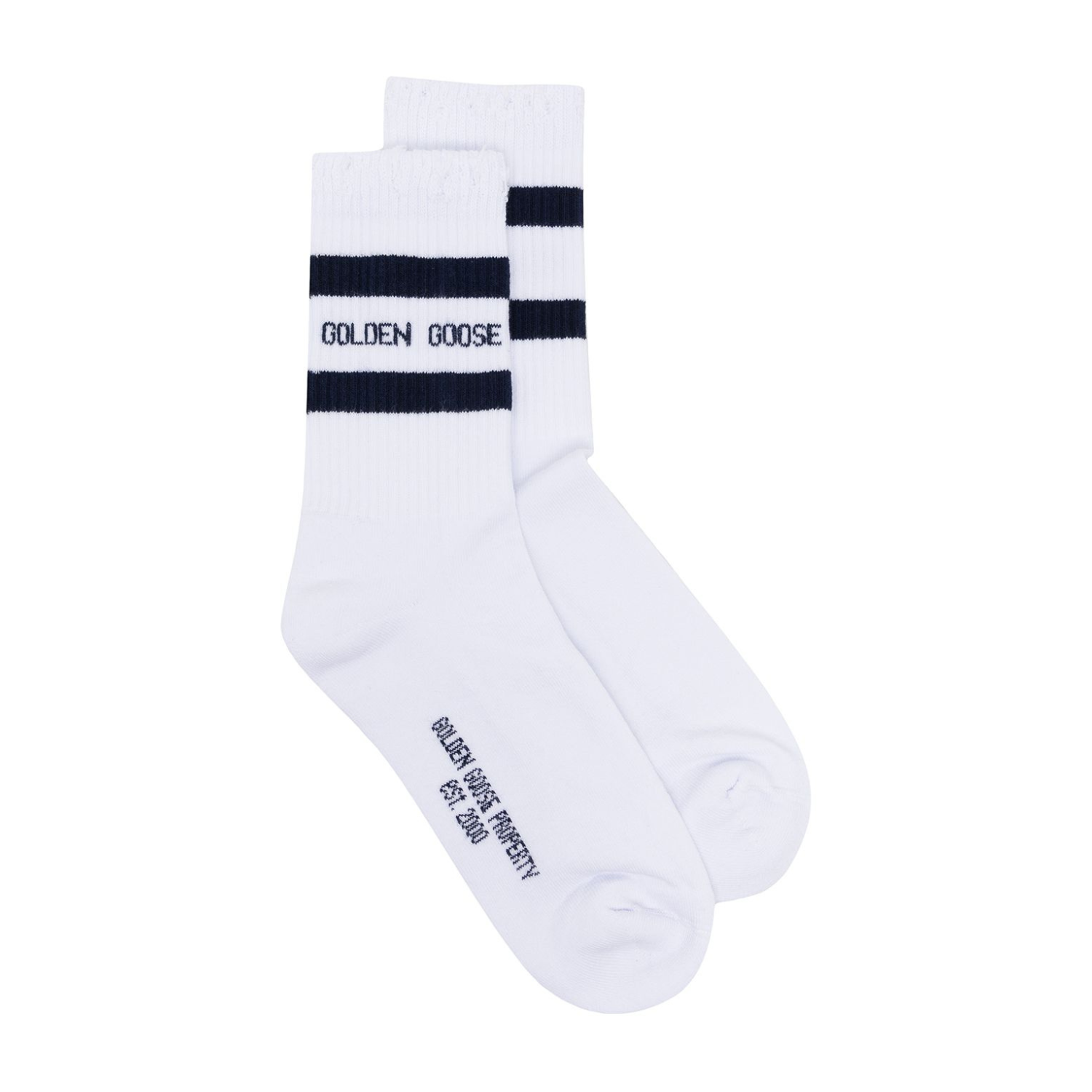 Golden Goose White Stripe Trim Ribbed Socks. White stripe trim ribbed socks in soft cotton.