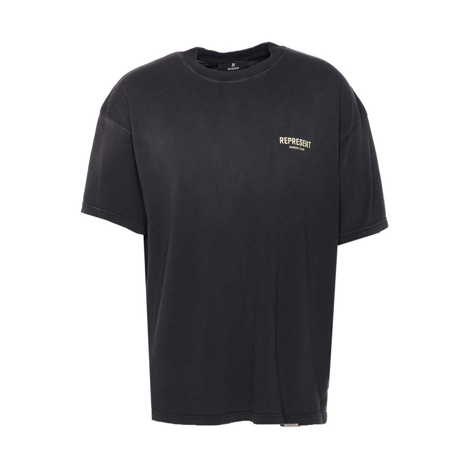 Represent Black Owners' Club T-Shirt. Black cotton t-shirt with faded wash, short sleeves, crew neck and logo print.