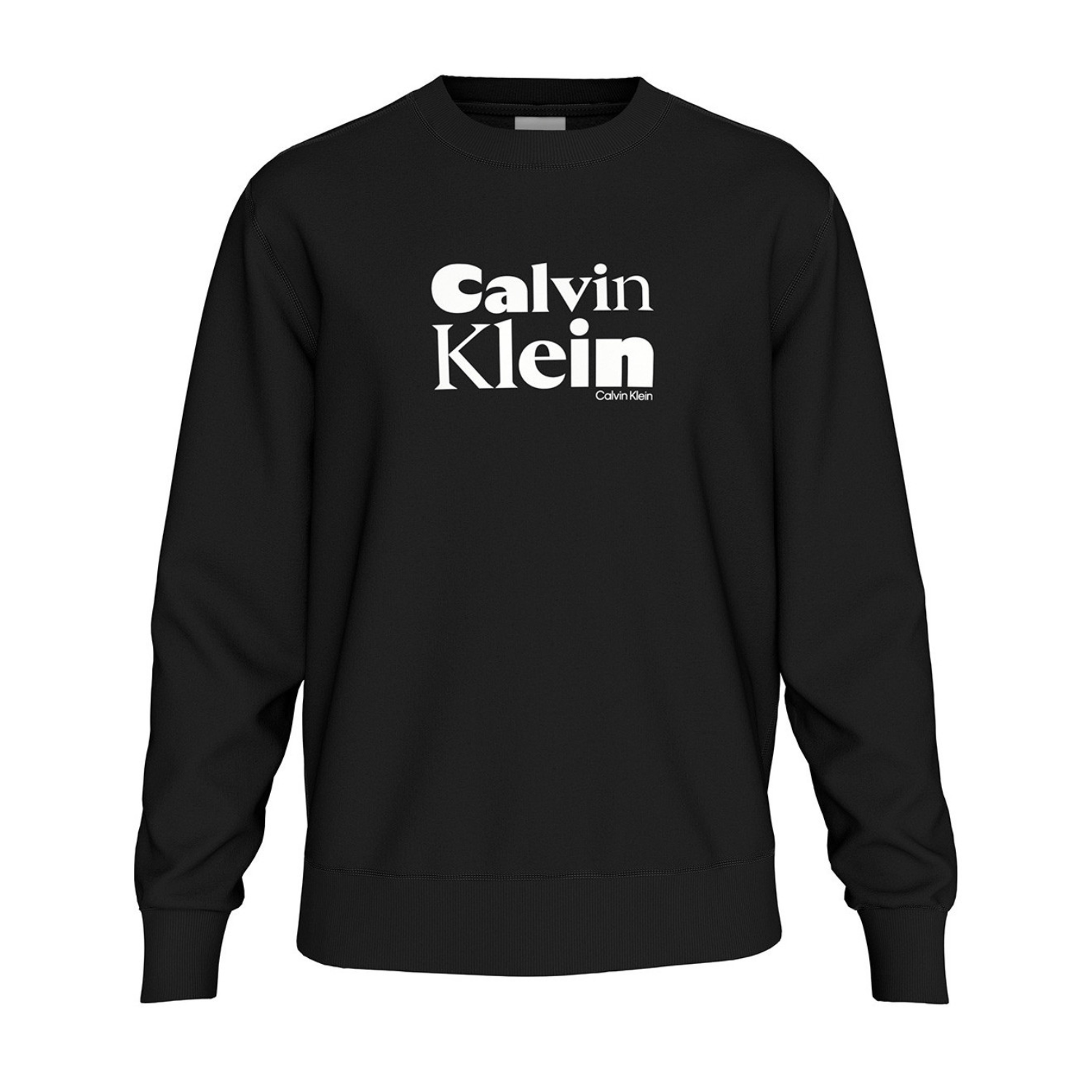Calvin Klein Black Logo Print Cotton Sweatshirt. Black cotton sweatshirt with white logo print to the front, crew neck and long sleeves.