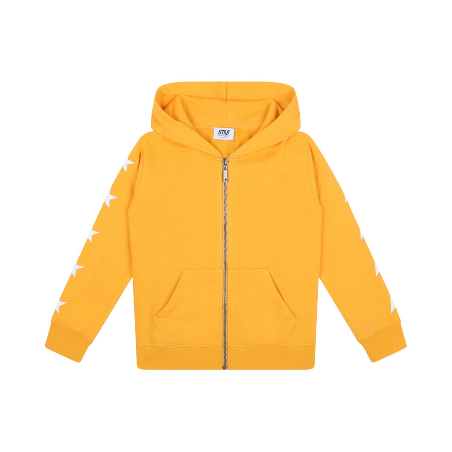 Golden Goose Kids Warm Apricot Star Print Hoodie. Warm apricot cotton hoodie, front zip fastening, two front pouch pockets, ribbed cuffs and hem, long sleeves.