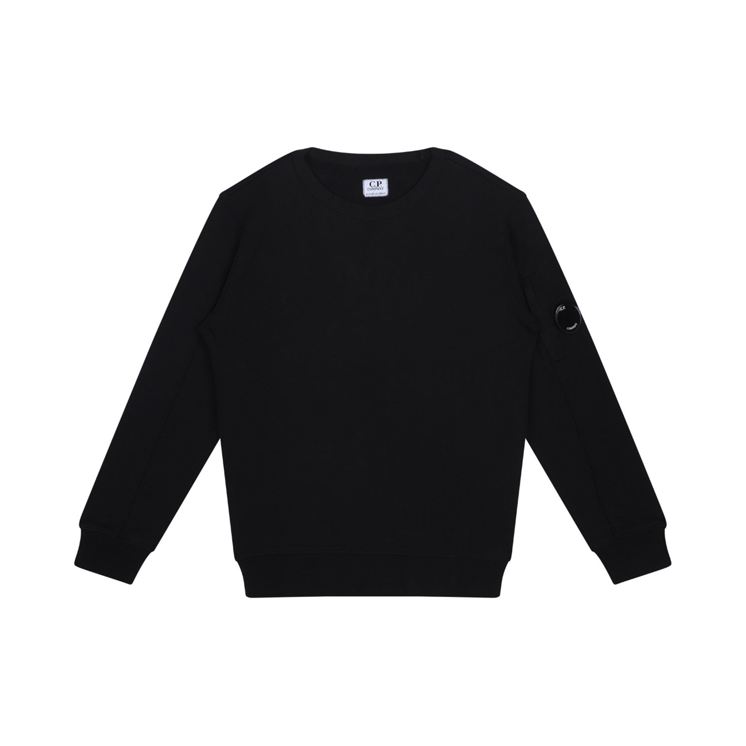 C.P. Company Kids Black Sweatshirt. Black cotton sweatshirt, crew neck, long sleeves, logo patch to the sleeve.