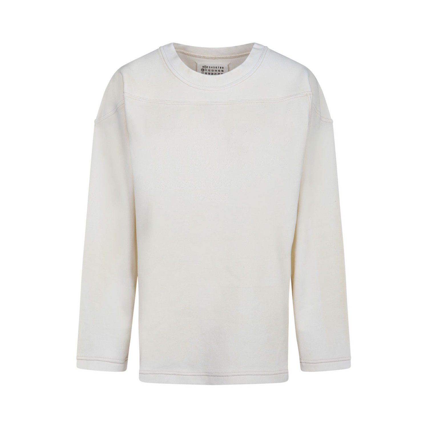 Maison Margiela Ivory Numeric Logo Sweatshirt. Ivory monochrome pattern sweatshirt, iconic brand logo embroidered on the front, long sleeves.