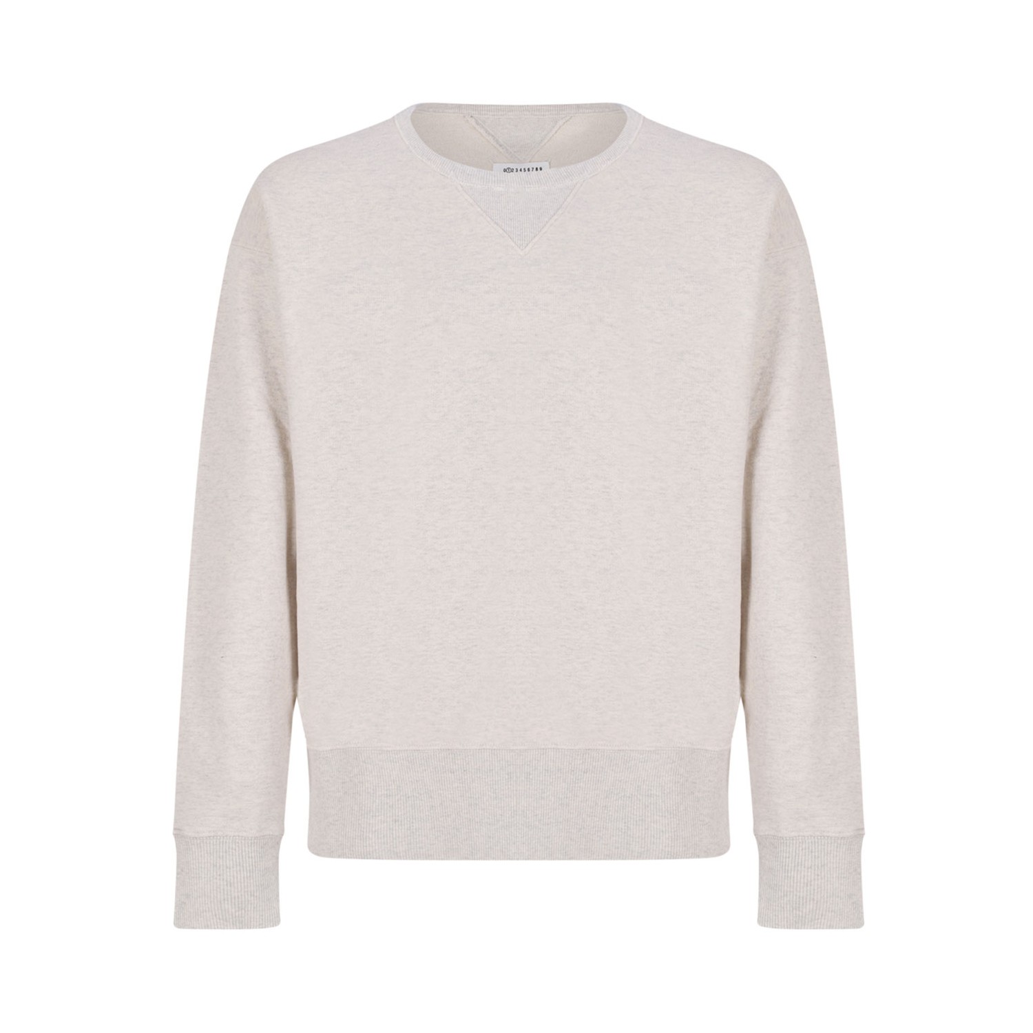 Maison Margiela Ecru Melange Crew-Neck Sweatshirt. Ecru melange crew-neck sweatshirt with ribbed cuffs, ribbed hem and tonal stitching.