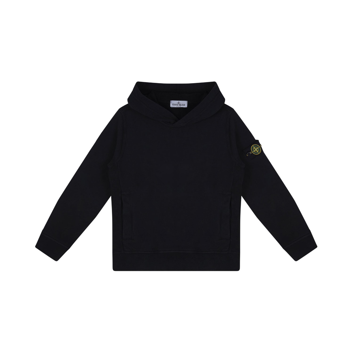 Stone Island Junior Black Hoodie With Logo. Black cotton hoodie with logo and front welt pockets.