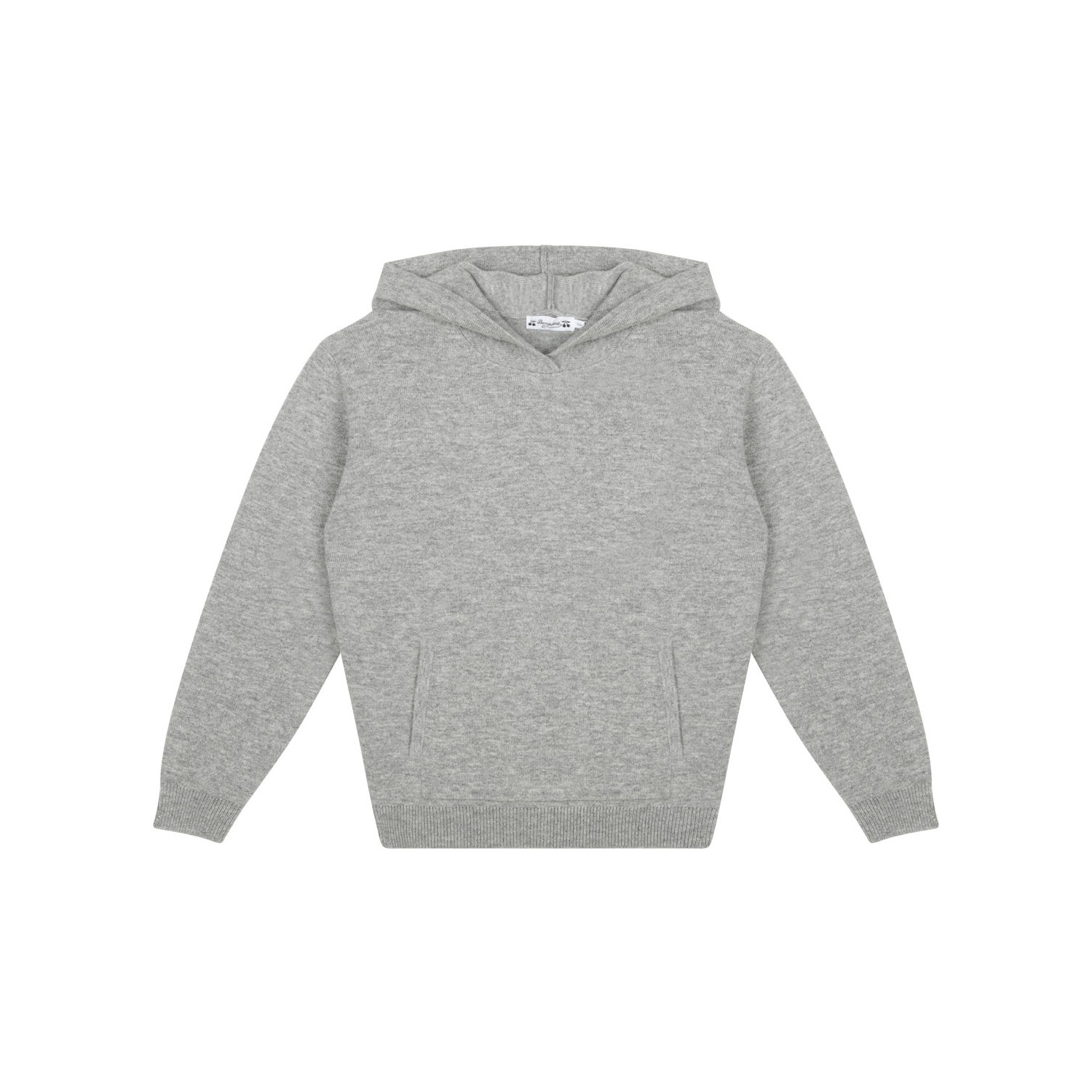 Bonpoint Grey Wool and Cashmere Hoodie. Grey wool and cashmere hoodie with long sleeves and kangaroo pocket to the front.