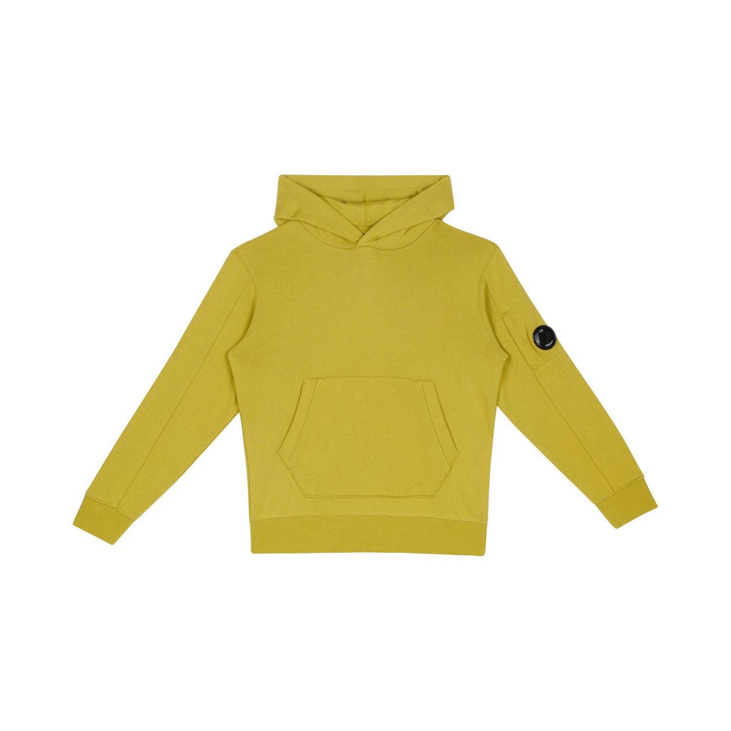 C.P. Company Kids Cypress Green Hoodie. Cypress green cotton hoodie, logo patch to the sleeve, long sleeves, kangaroo pocket.