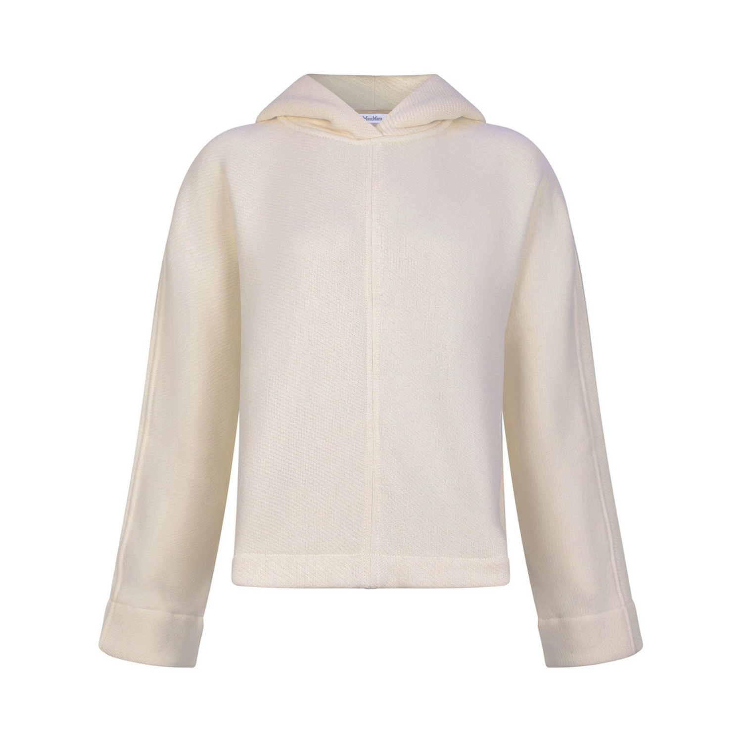 Max Mara Ivory Cotton Jersey Sweatshirt. Ivory cotton jersey sweatshirt with kimono sleeves at the front, low set-in at the back. Stitched trim motif at center front, internal finishing in tone-on-tone grosgrain and organza. "Special jersey" tag with technical characteristics of the fabric.