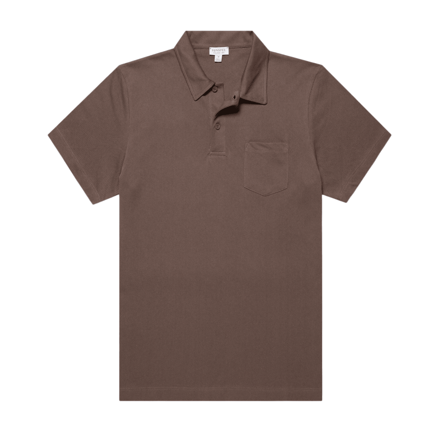 Sunspel Walnut Riviera Polo Shirt. Crafted from the finest, extra-long staple Supima cotton, traceable to its Californian farm of origin, it is lightweight, breathable and exceptionally comfortable. Cut for a slim fit, it is a modern classic.