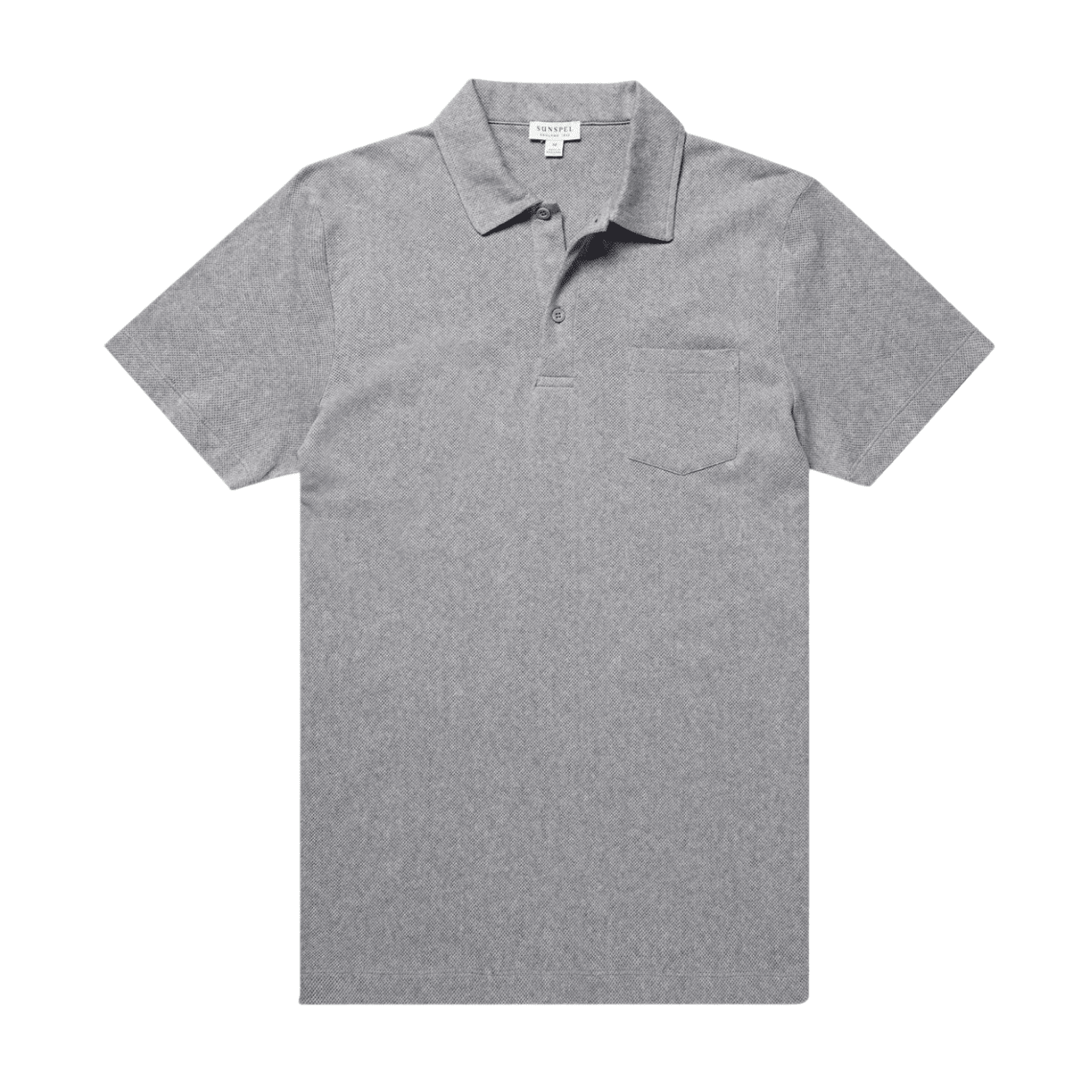 Sunspel Grey Melange Riviera Polo Shirt. Crafted from the finest, extra-long staple Supima cotton, traceable to its Californian farm of origin, it is lightweight, breathable and exceptionally comfortable. Cut for a slim fit, it is a modern classic.